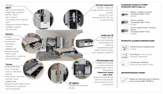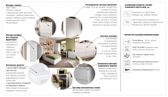 Кровать для детской Оникс вайт 90*200 (основание ламели)