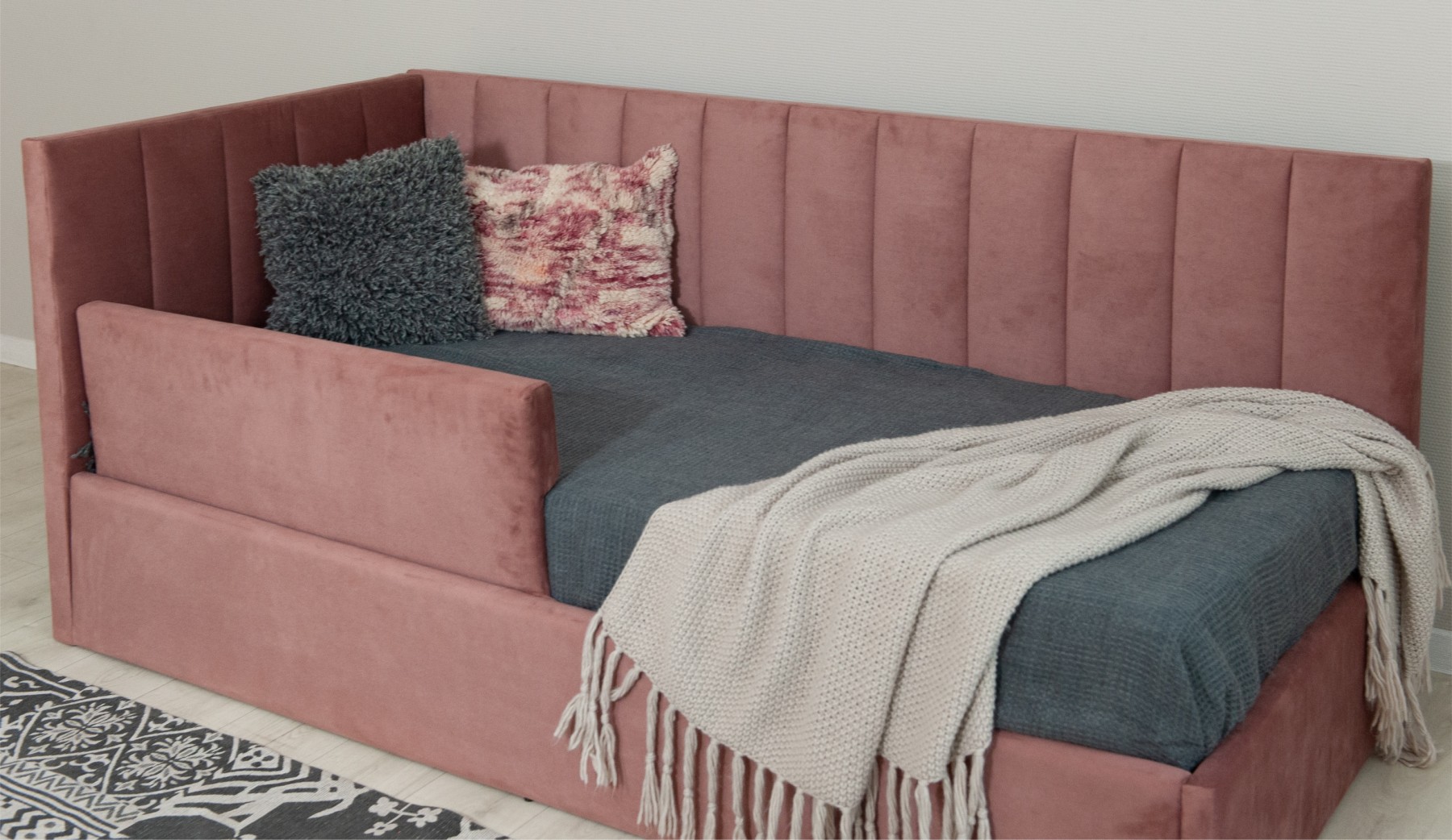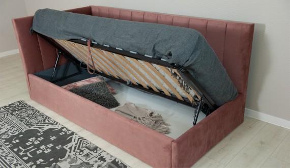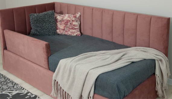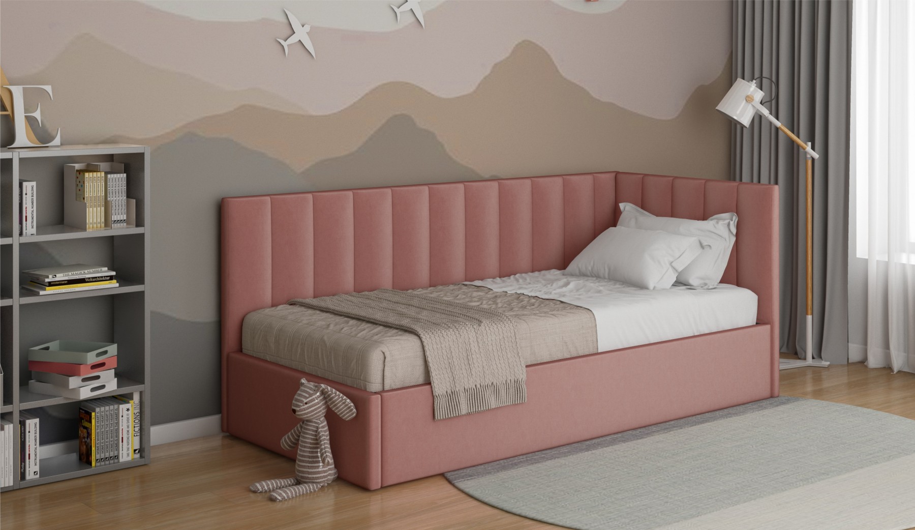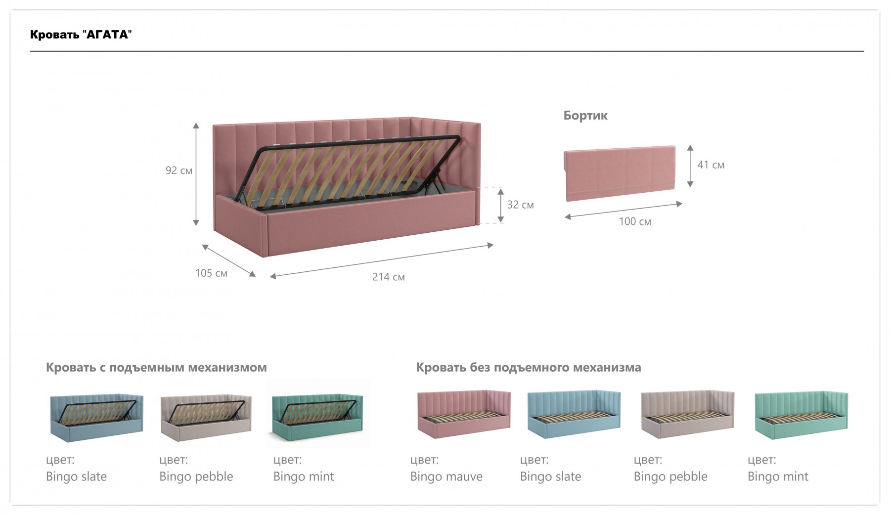 Агата" - кровать, которая сочетает в себе функциональность и стиль для спальной зоны в детской комнате. Отличительная черта дизайна - аккуратная вертикальная прострочка на изголовье и спинке, придающая модели оригинальный вид и дополнительный комфорт. Кровать оснащена ортопедическим основанием с ламелями на цельносварной металлической раме. Надежный подъемный механизм облегчает доступ к вместительному бельевому ящику, предоставляя дополнительное пространство для хранения. Конструкция кровати предусматривает сборку как с левой, так и с правой стороны, что делает её универсальным выбором для любого помещения.