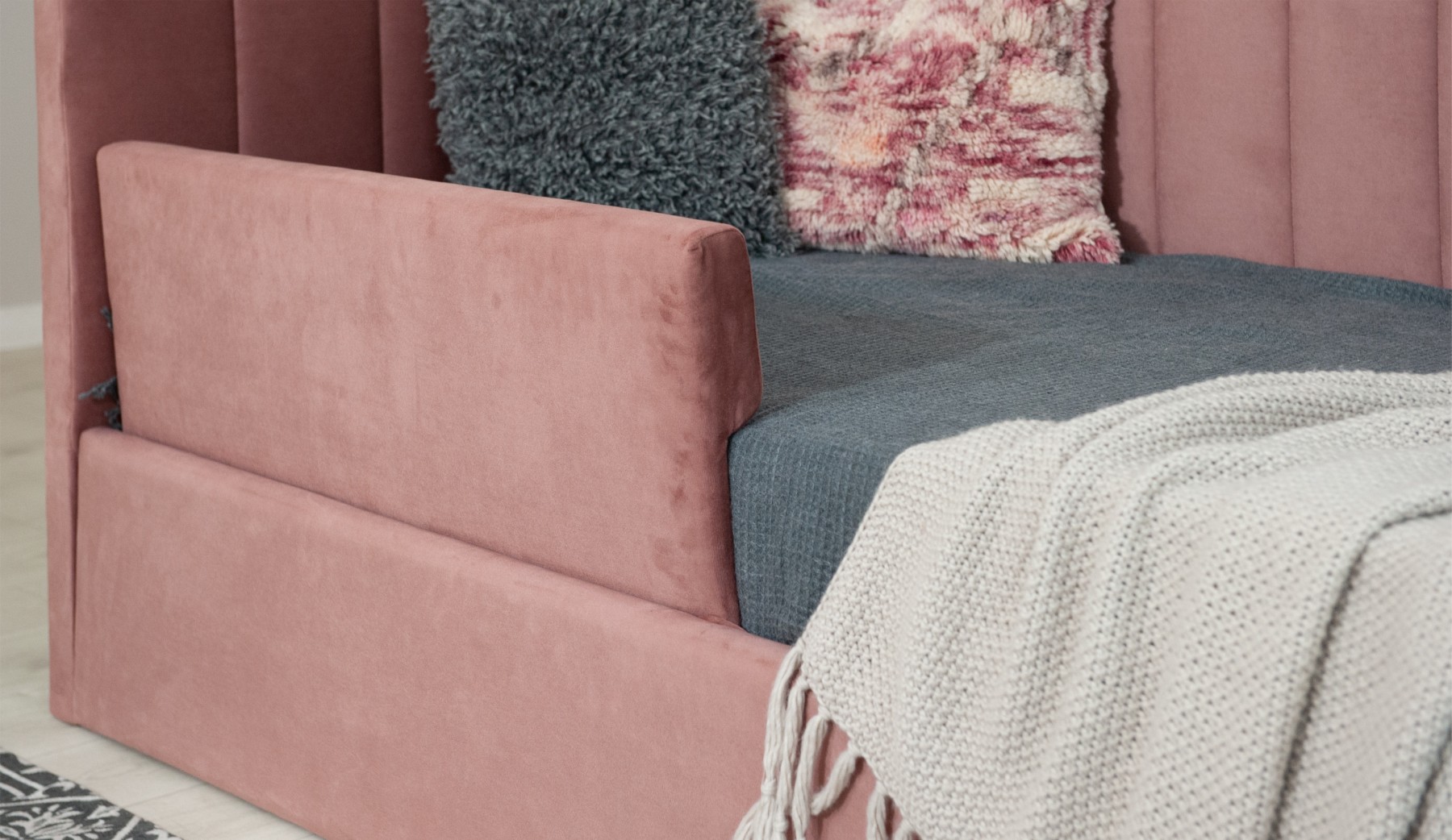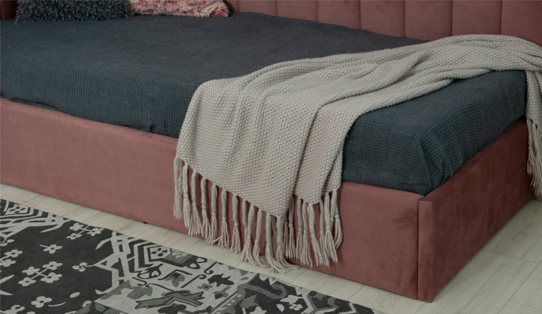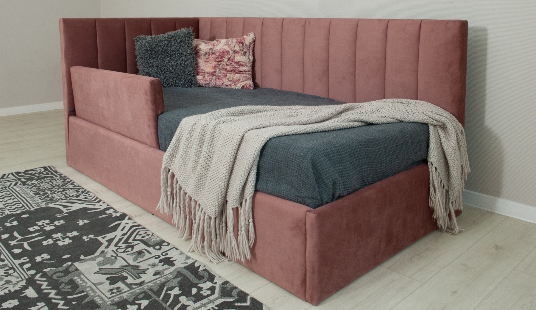 Агата" - кровать, которая сочетает в себе функциональность и стиль для спальной зоны в детской комнате. Отличительная черта дизайна - аккуратная вертикальная прострочка на изголовье и спинке, придающая модели оригинальный вид и дополнительный комфорт. Кровать оснащена ортопедическим основанием с ламелями на цельносварной металлической раме. Надежный подъемный механизм облегчает доступ к вместительному бельевому ящику, предоставляя дополнительное пространство для хранения. Конструкция кровати предусматривает сборку как с левой, так и с правой стороны, что делает её универсальным выбором для любого помещения.