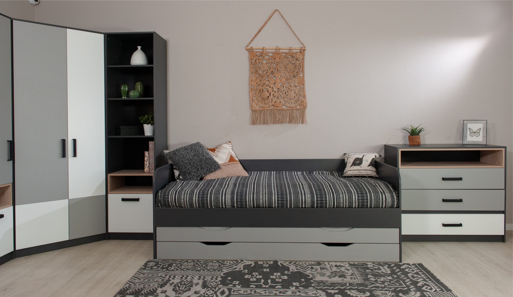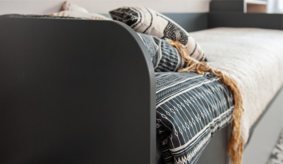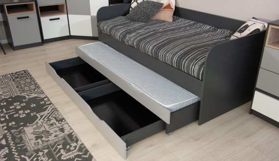 Топчан Квадро с эргономичным дизайном и универсальным размером подходит для детей разного возраста. Высокая спинка защитит от холодной стены, а скругленные боковины делают модель более безопасной. Кромка 2 мм на спинке и боковинах добавляет ему прочности и долговечности, предотвращает риск получения травм при активных играх. Возможность дополнить топчан ящиком для хранения постельных принадлежностей или игрушек делает его еще более функциональным. Дополнительный ящик для топчана с матрасом образует второе спальное место, экономит пространство комнаты.
