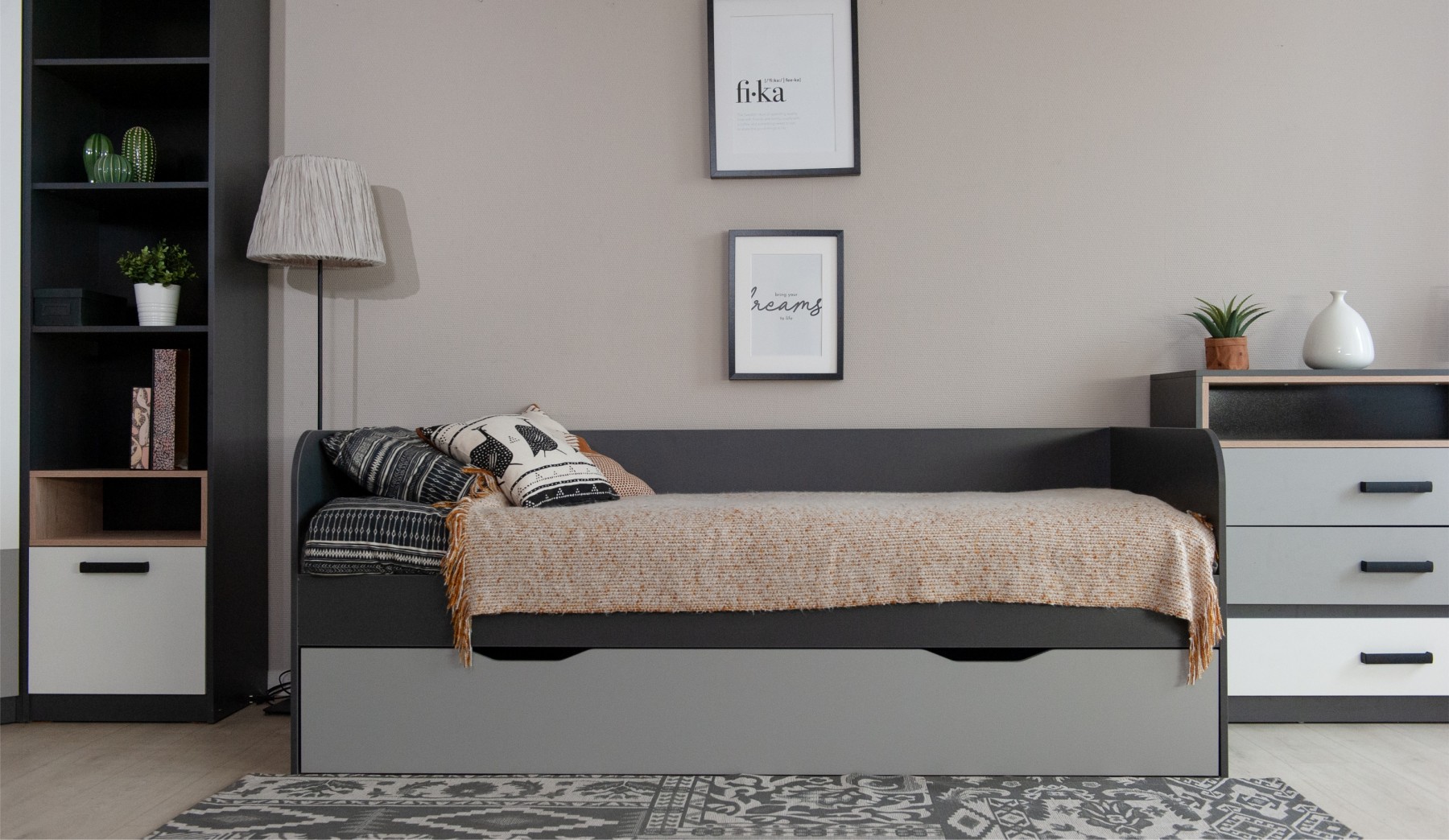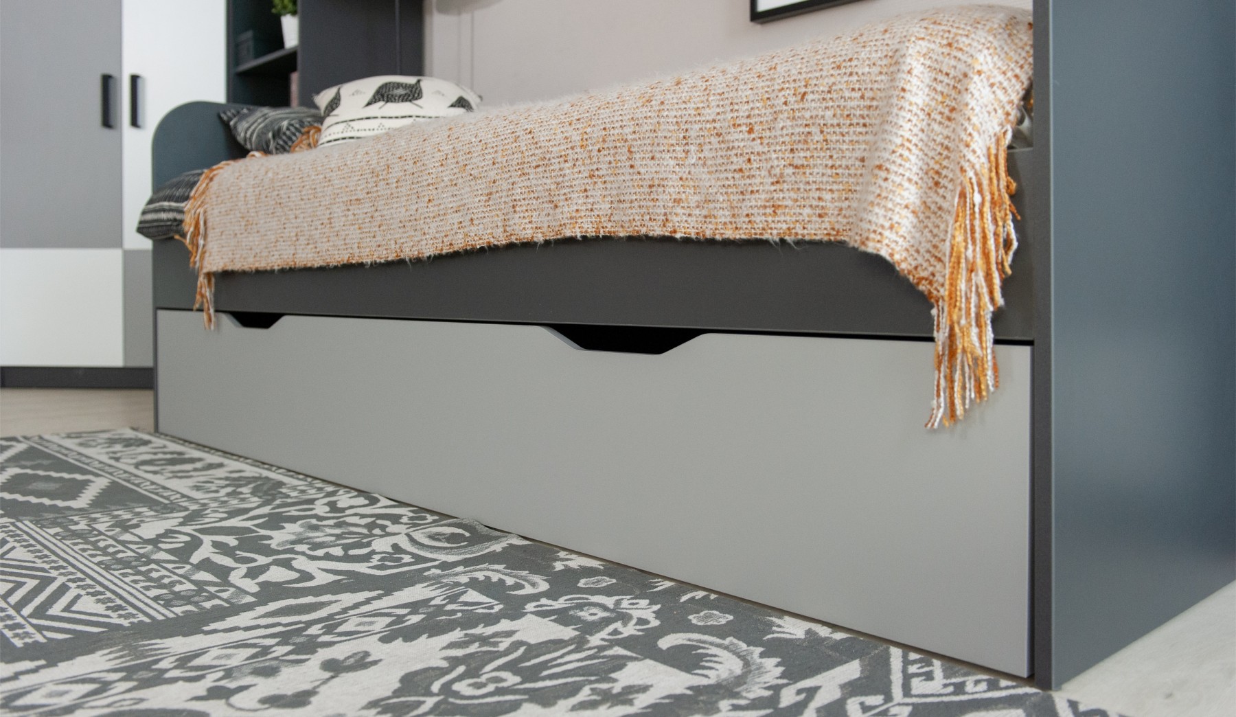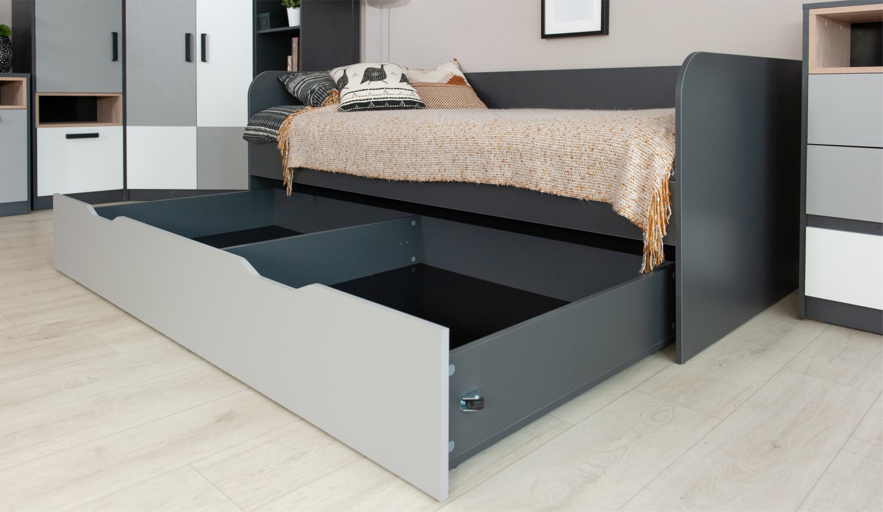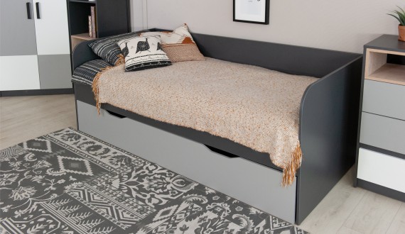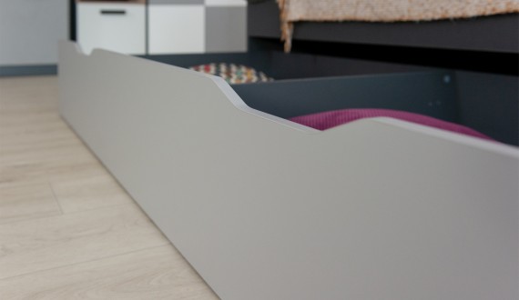 Топчан Квадро с эргономичным дизайном и универсальным размером подходит для детей разного возраста. Высокая спинка защитит от холодной стены, а скругленные боковины делают модель более безопасной. Кромка 2 мм на спинке и боковинах добавляет ему прочности и долговечности, предотвращает риск получения травм при активных играх. Возможность дополнить топчан ящиком для хранения постельных принадлежностей или игрушек делает его еще более функциональным. Дополнительный ящик для топчана с матрасом образует второе спальное место, экономит пространство комнаты.