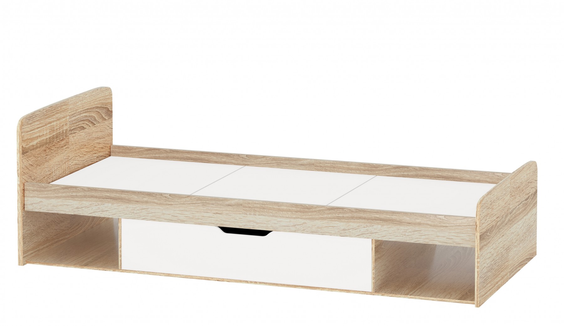 Кровать Стелс со скругленными изголовьем и спинкой имеет открытые ниши для хранения и большой ящик для белья, с помощью множества роликов его легко выдвинуть. Для безопасности и удобства открывания выдвижной ящик вместо ручек оснащен выемками на лицевой части фасада. Пользоваться кроватью может взрослый и ребенок любого возраста, так как она имеет размеры стандартной кровати 90х200см, устойчивую конструкцию и нейтральный для интерьера цвет. Идеально компонуется со всеми модулями системы Стелс. Мебель выполнена из высококачественных экологичных материалов.