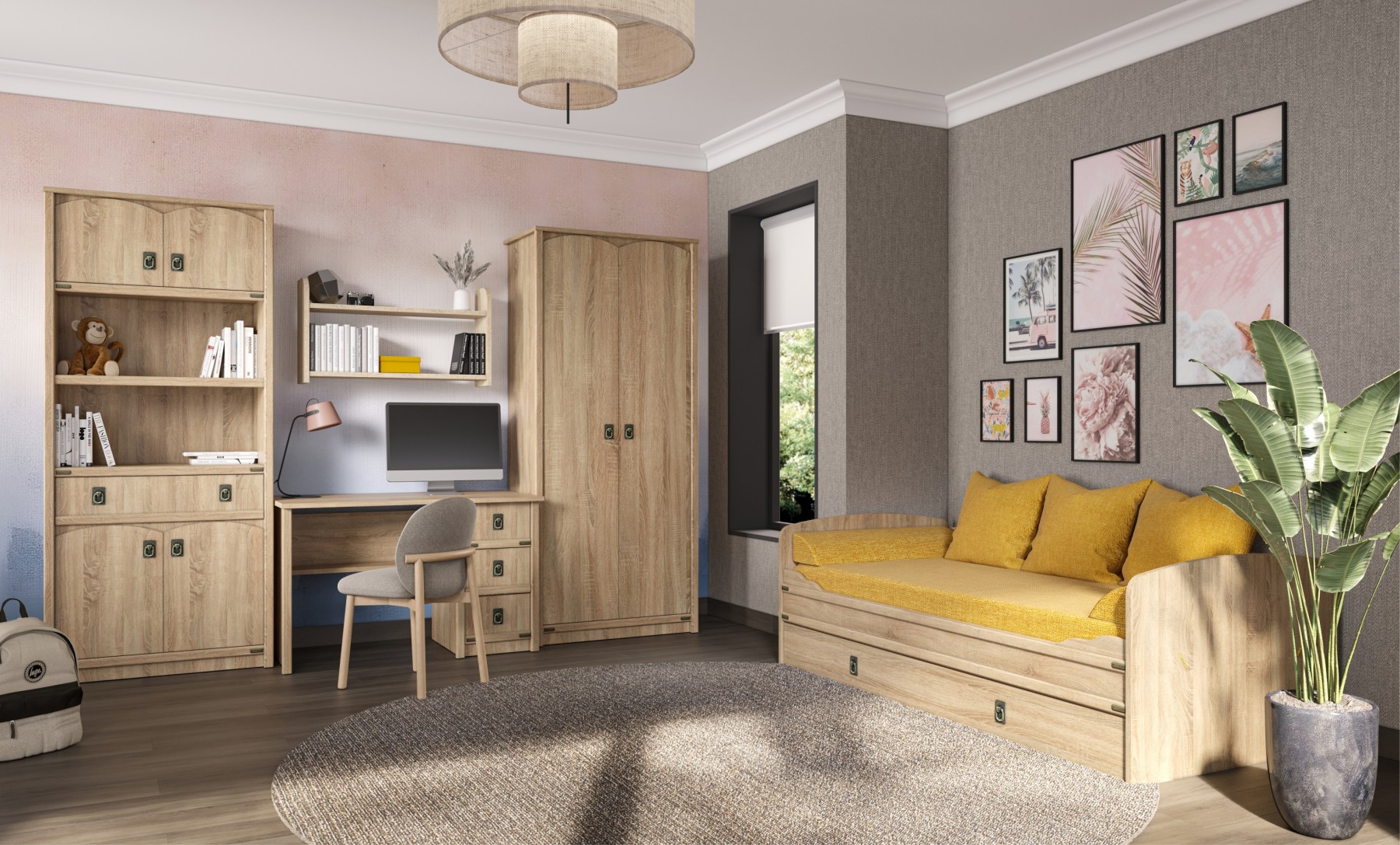 Детская Валенсия - отличное решение для детей любой возрастной категории. Все модули этой системы максимально функциональны и вместительны. Разнообразие модулей позволит Вам подобрать оптимальный комплект. Декоративные элементы создают яркий морской стиль этого комплекта. В этой модели предлагается более компактное решение двуспальной кровати, чем многоярусная кровать, съедающая слишком много пространства. При этом есть возможность превратить кровать в диван. Жемчужина модели – сундук. При относительно демократичной цене в комплекте использованы высококачественные материалы.