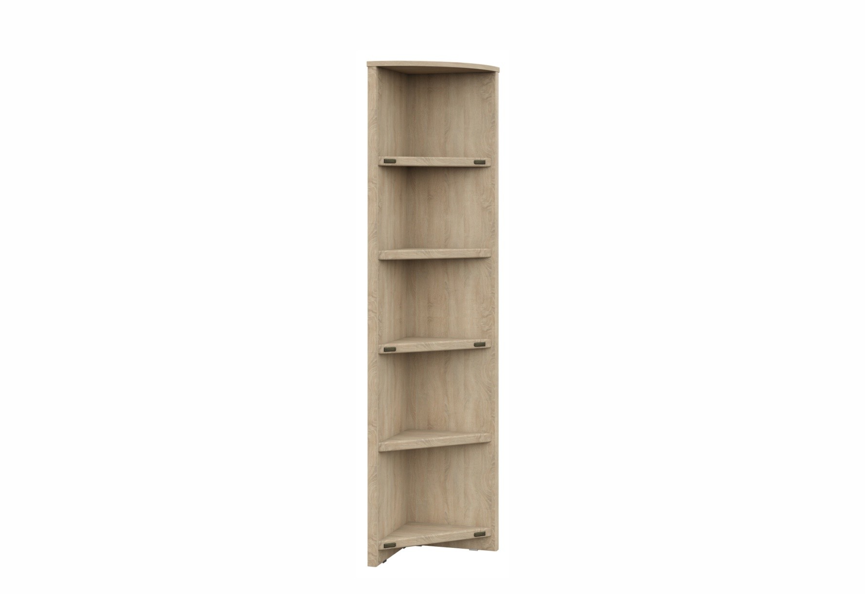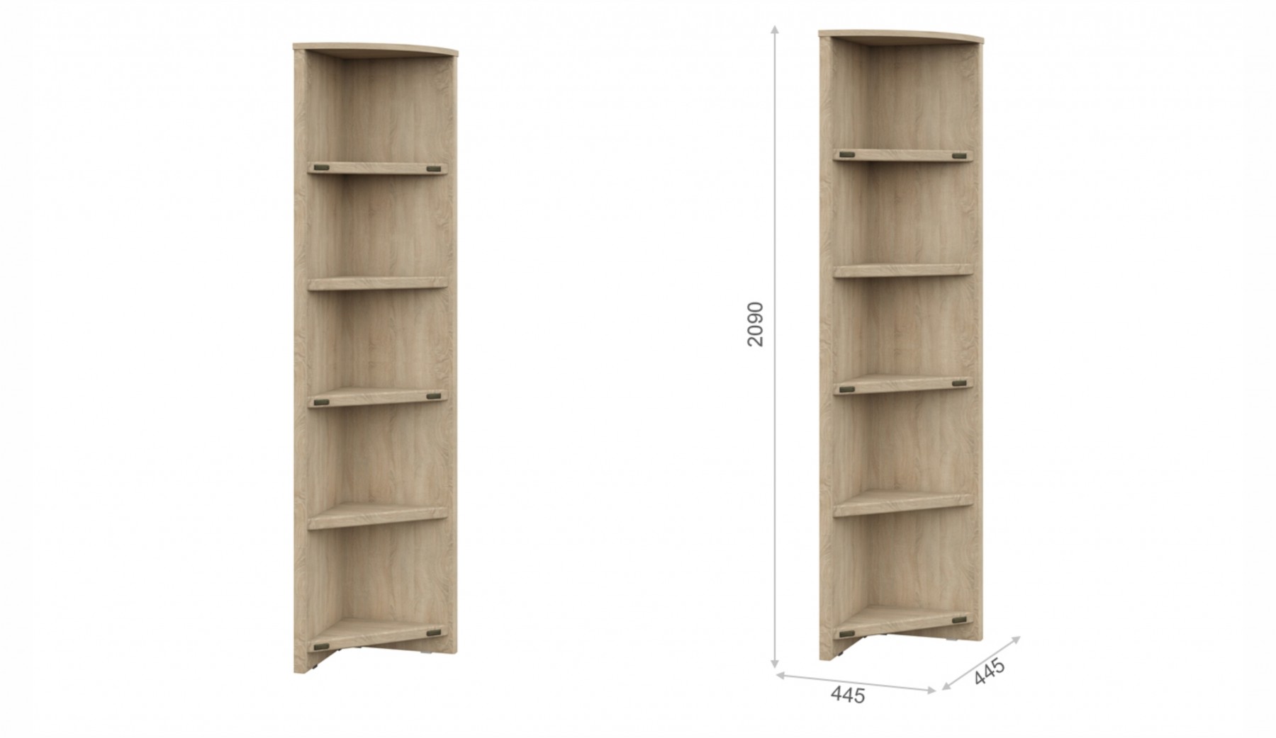 Угловой стеллаж Валенсия - это универсальный помощник в организации пространства. Его можно легко вписать в любой интерьер, сочетая со шкафами и пеналами разной глубины. Возможность сборки как с правой, так и с левой стороны делает стеллаж гибким инструментом для планирования комнаты. Открытые полки создадут уютное пространство для книг, памятных фотографий и декоративных акцентов. Морская тематика, отраженная в бронзовых декоративных элементах, делает его ярким элементом системы "Валенсия".