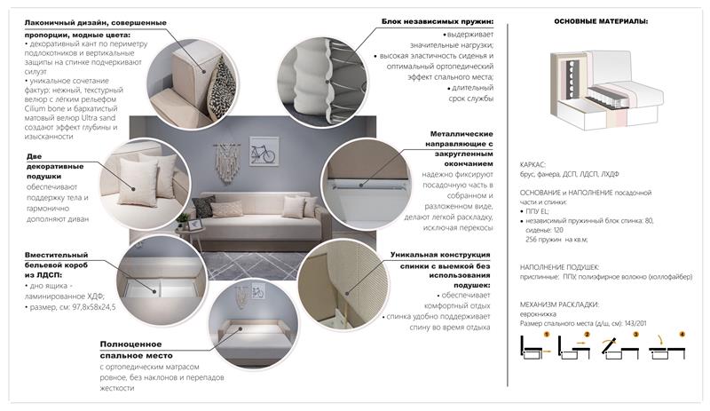 Прямой диван Сиеста