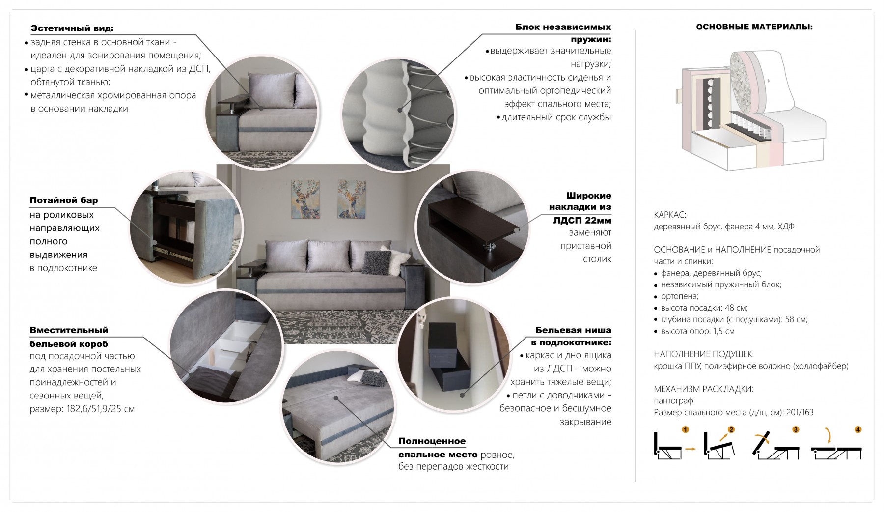 Диван "Атика NEW" представляет собой совершенное сочетание удобства и функциональности, обеспечивая комфортный отдых в любой момент дня и ночи. Встроенный мини-бар и широкие подлокотники позволяют удобно разместить всё необходимое для приятного времяпрепровождения, будь то просмотр фильмов или общение с друзьями. Благодаря продуманной системе трансформации и ортопедическому матрасу на независимом пружинном блоке, диван легко превращается в просторную двуспальную кровать, способствуя отличному отдыху и восстановлению сил. Прекрасный сон ночью гарантирует бодрое утро и хорошее настроение на весь день.