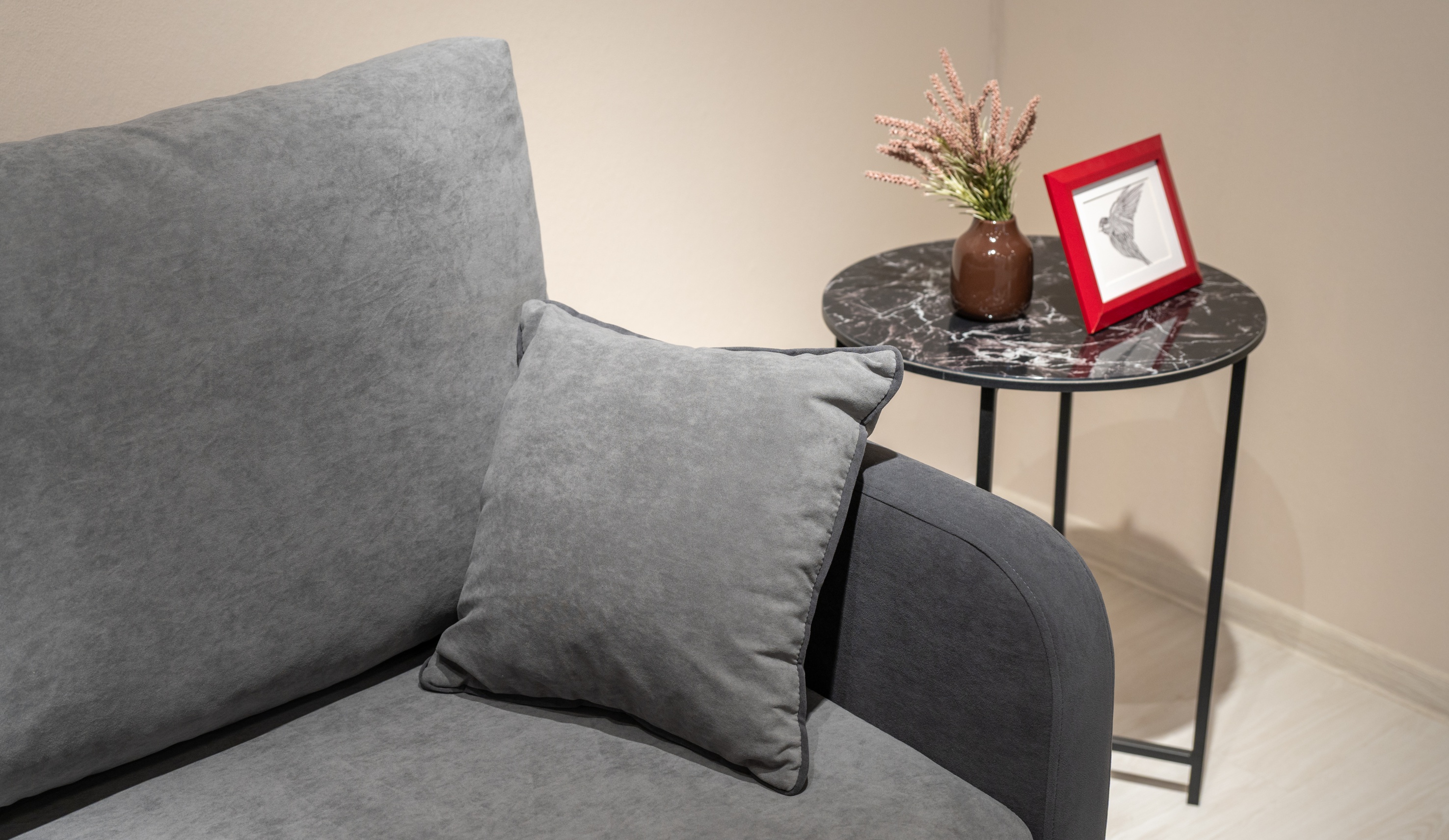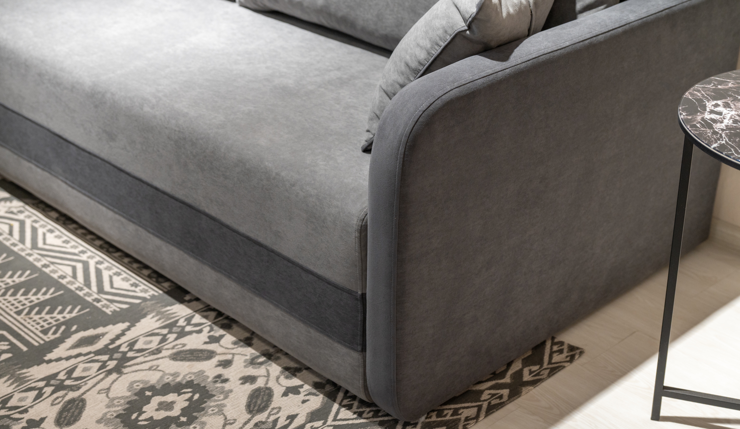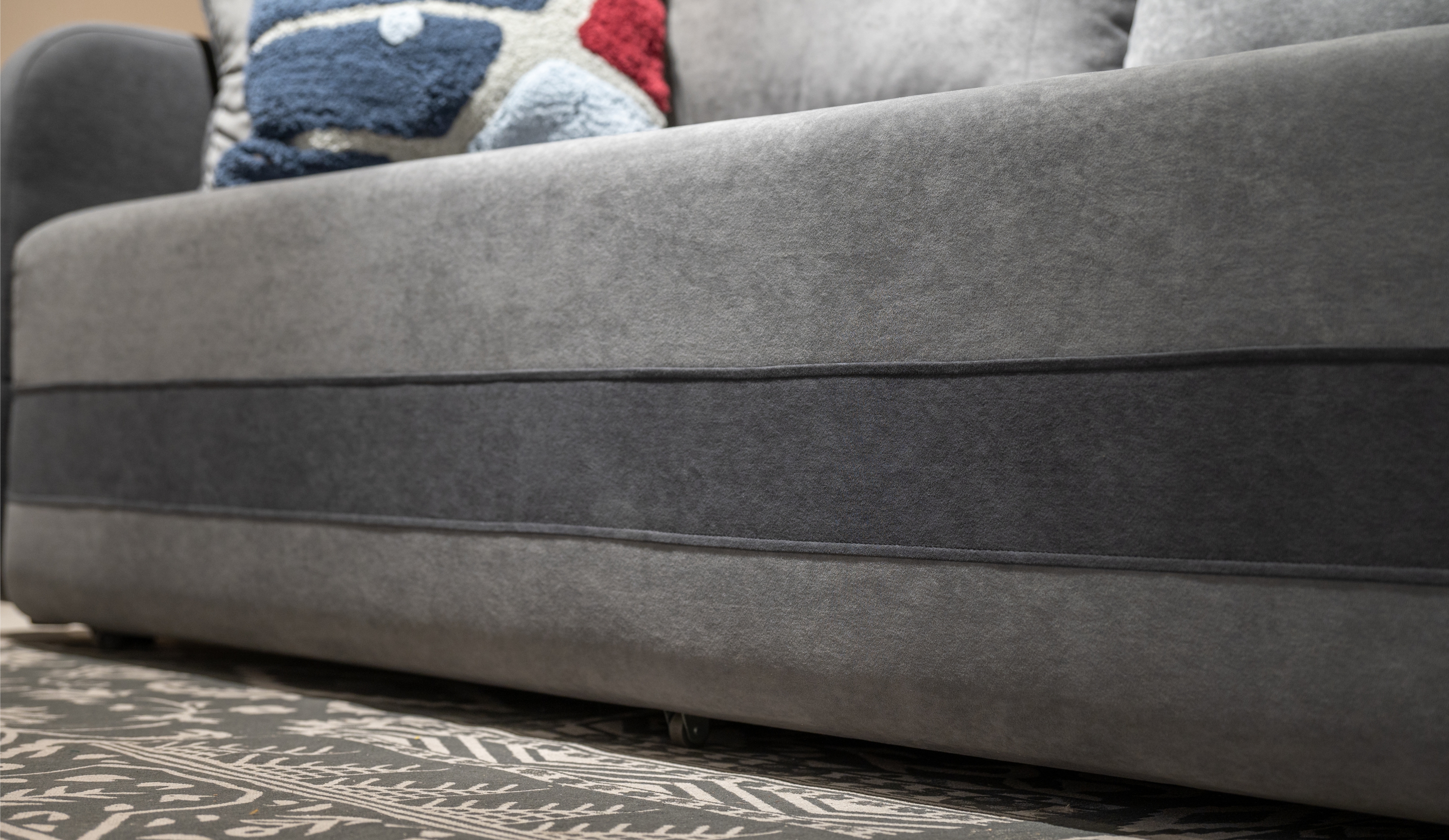 • Контрастный кант по периметру подчёркивает форму и добавляет акцент в общий облик дивана, придавая интерьеру выразительность и завершённость