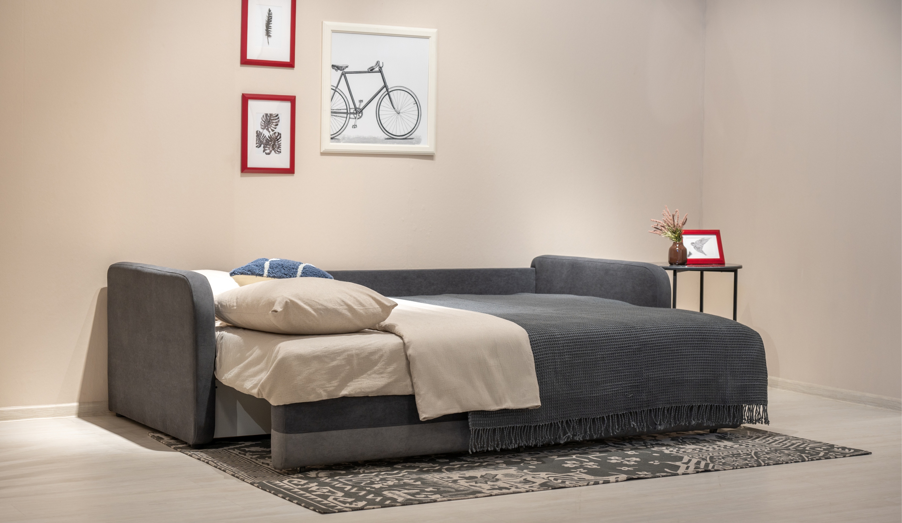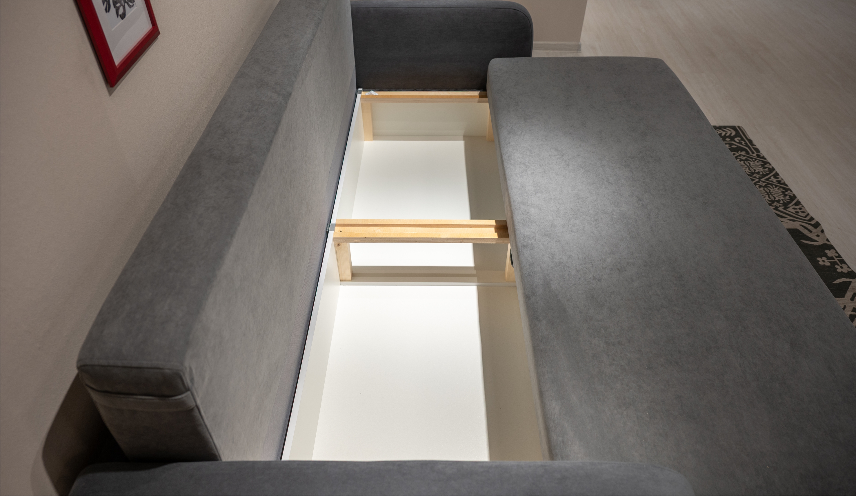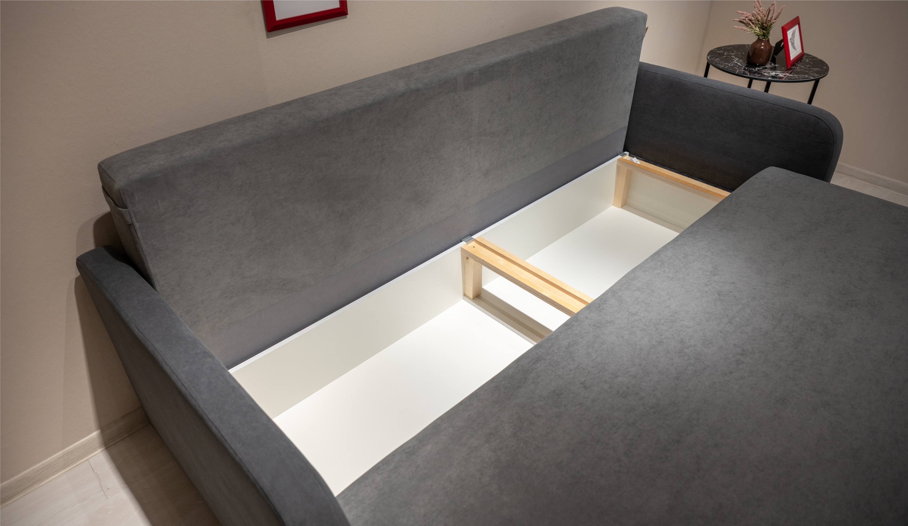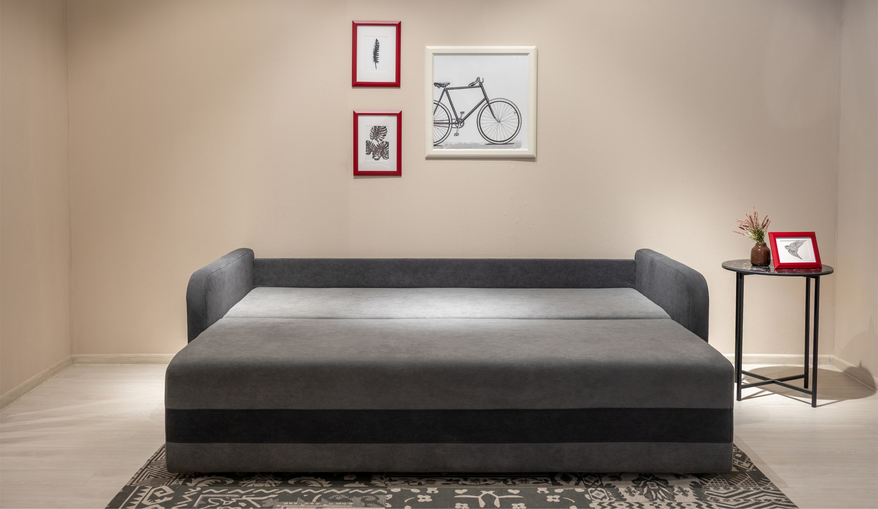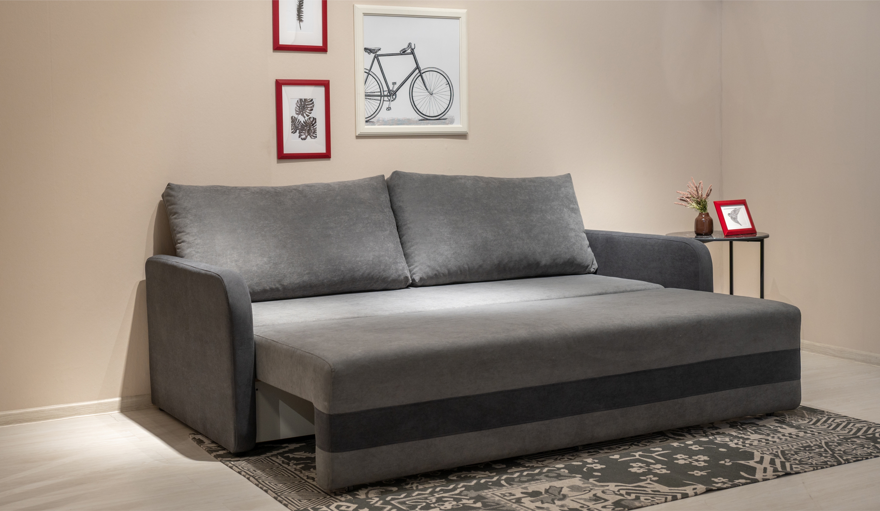 • Надёжный и простой механизм трансформации позволяет быстро и без усилий превратить диван в полноценную кровать — благодаря роликам и направляющим из прочной фанеры