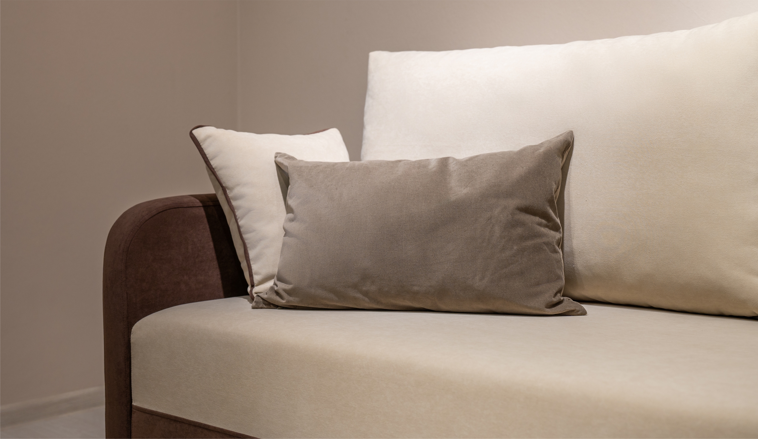 • Контрастный кант по периметру подчёркивает форму и добавляет акцент в общий облик дивана, придавая интерьеру выразительность и завершённость