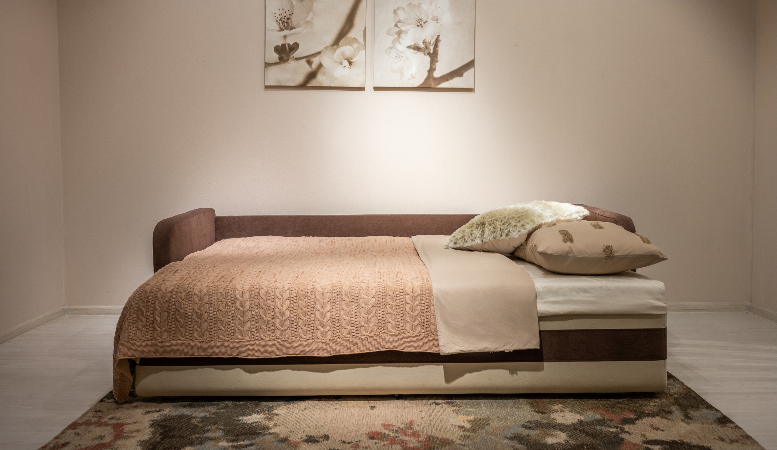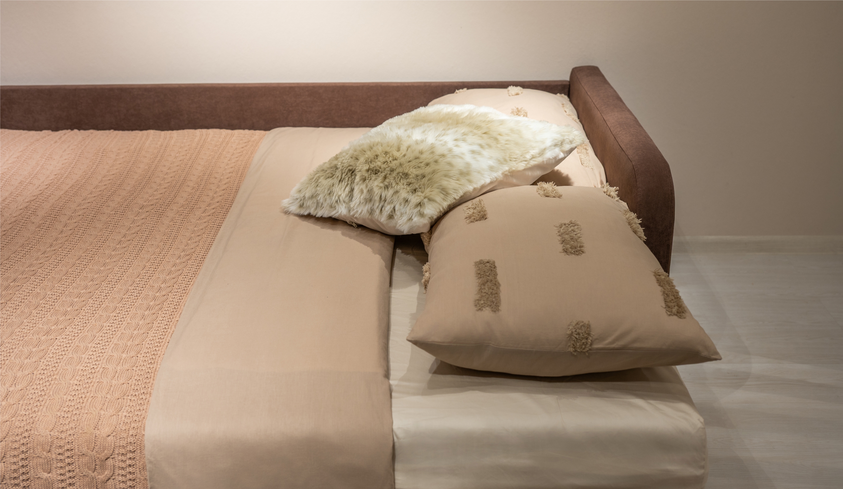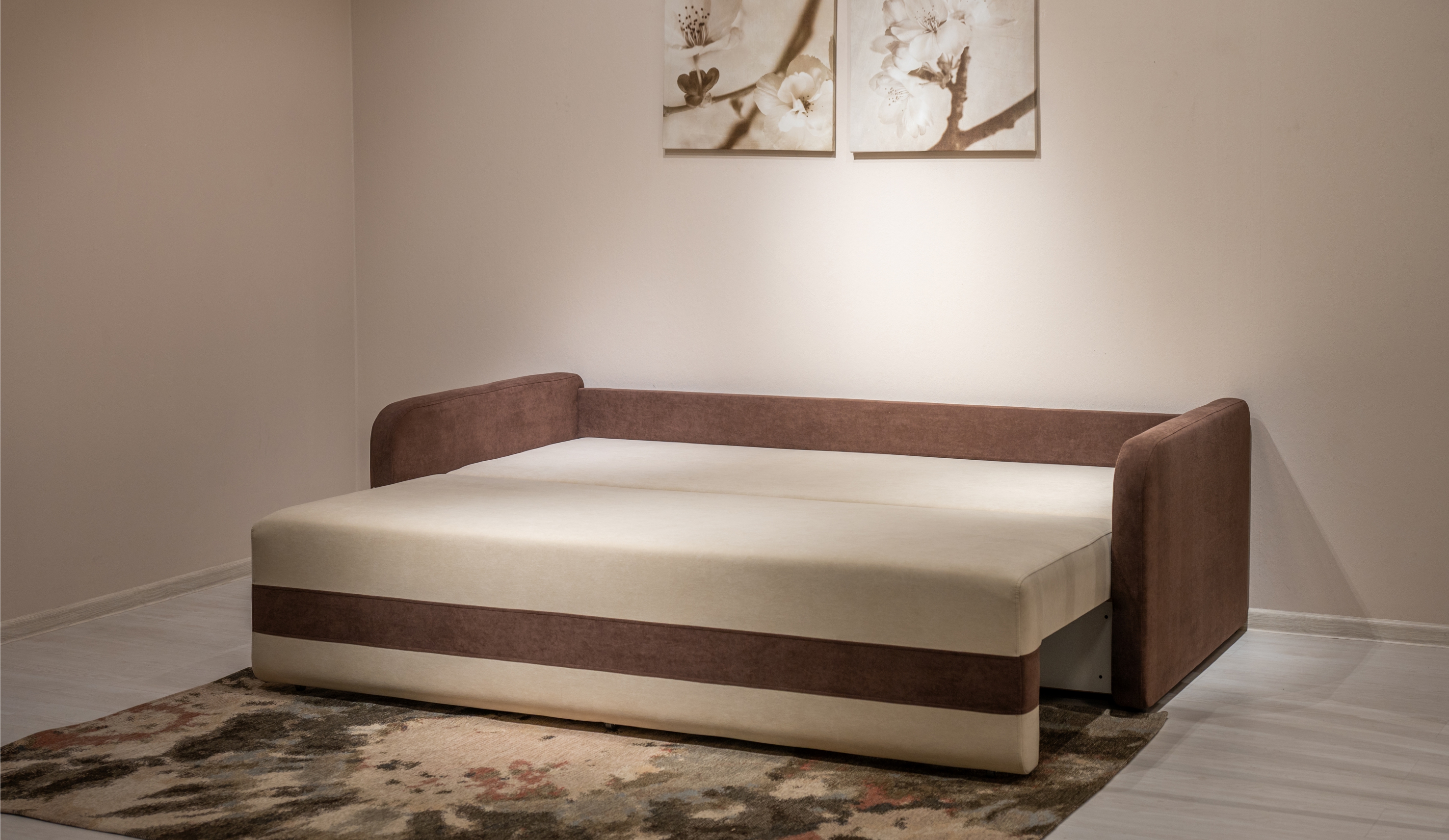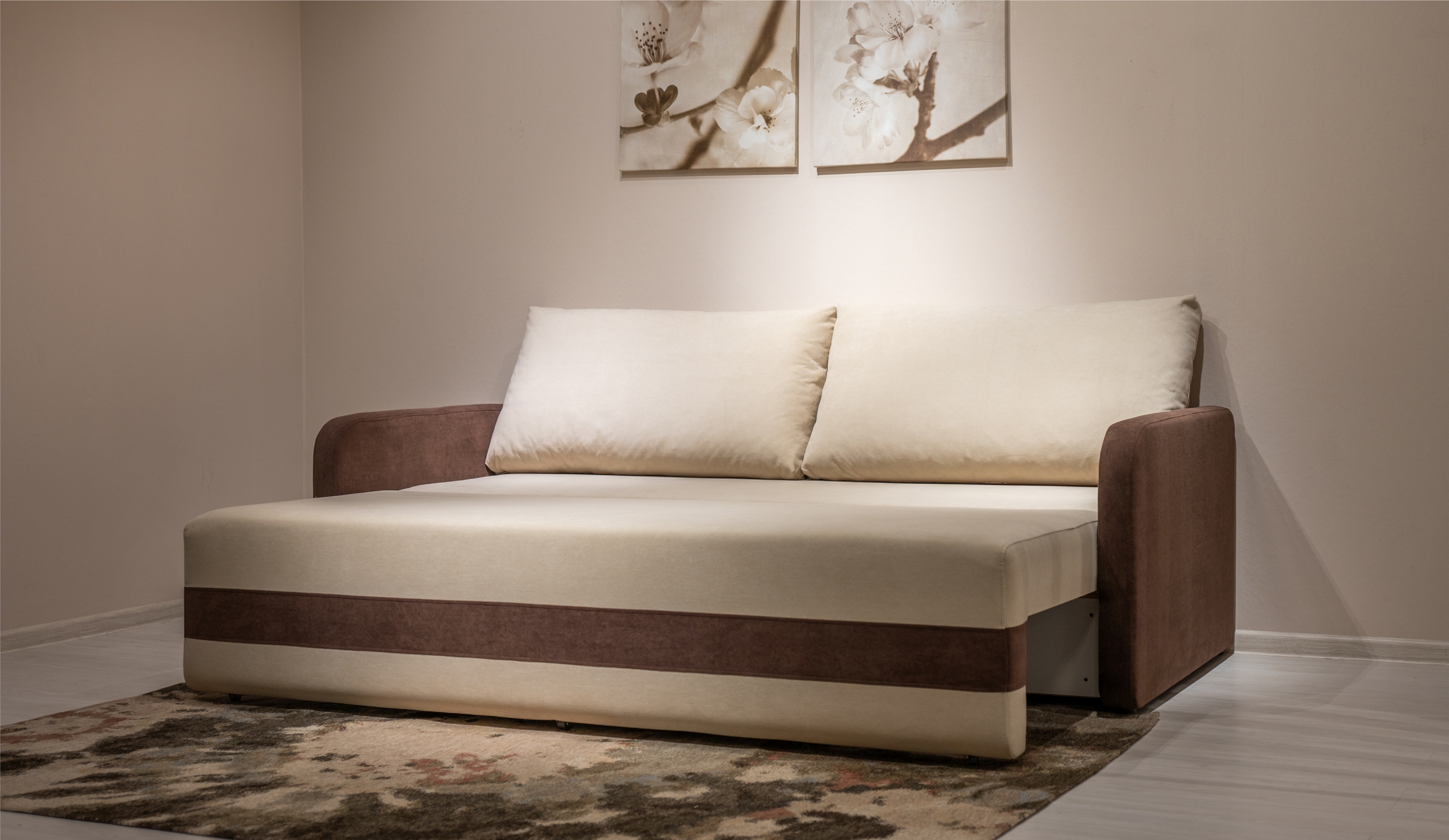 • Надёжный и простой механизм трансформации позволяет быстро и без усилий превратить диван в полноценную кровать — благодаря роликам и направляющим из прочной фанеры