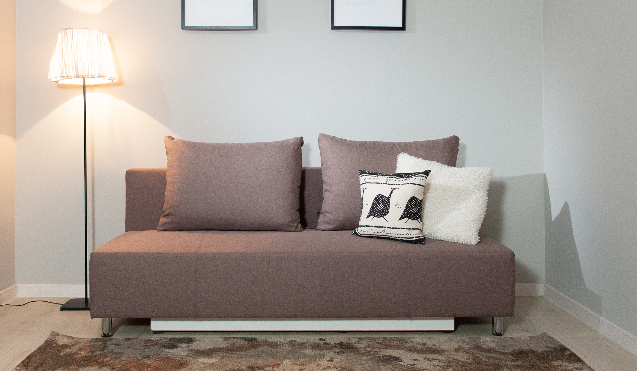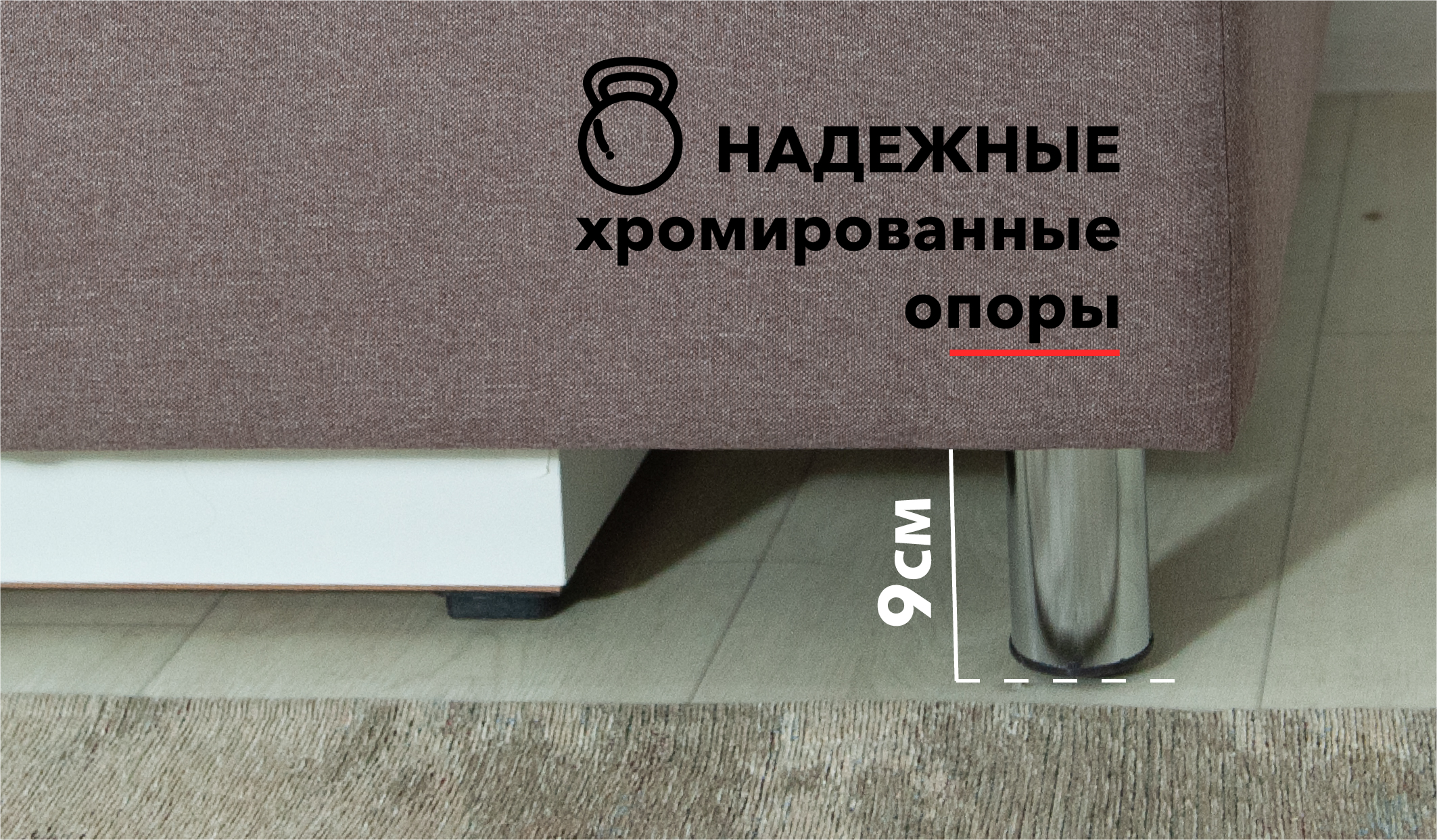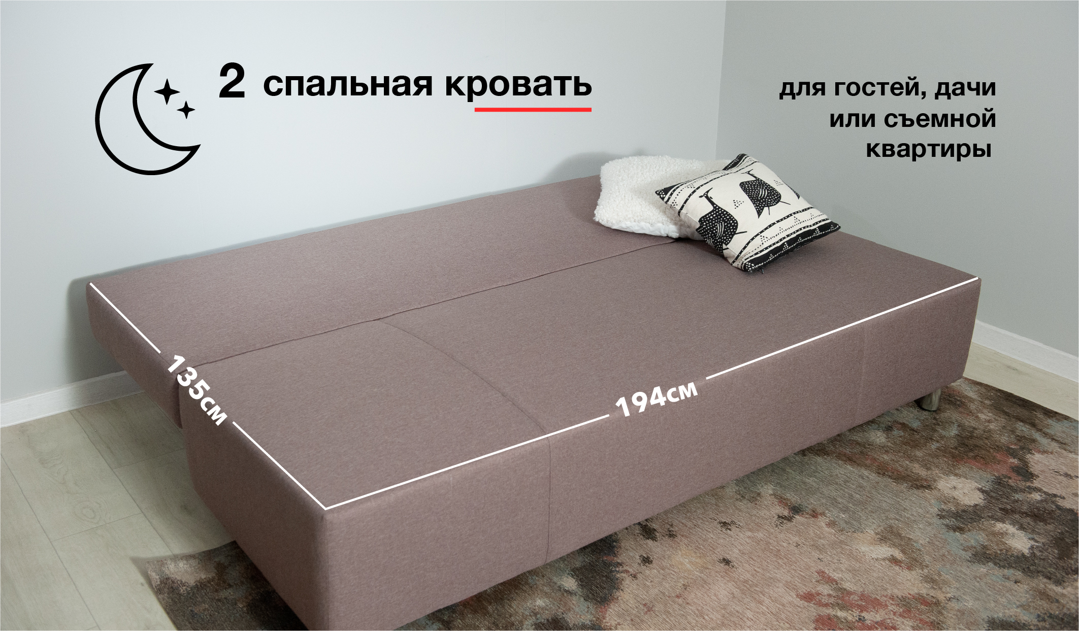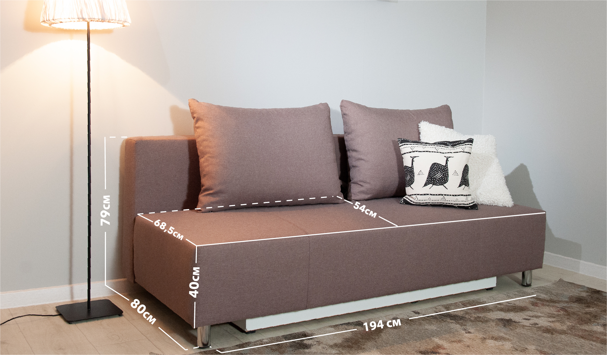 • Небольшие размеры, эргономичность дивана и отсутствие подлокотников являются преимуществом для помещений маленькой площади