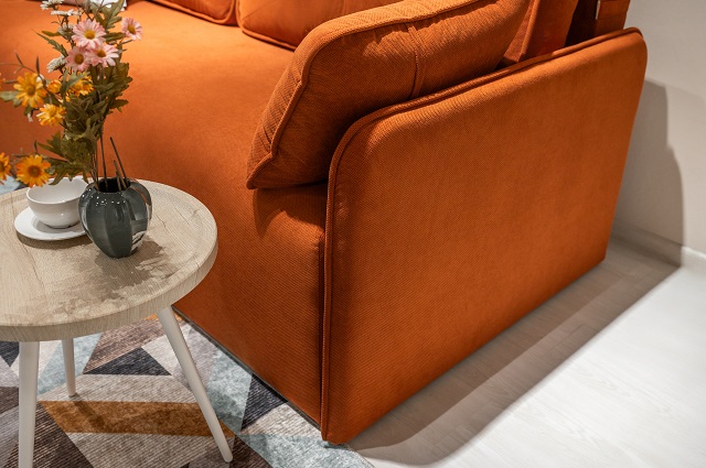 • Фактурная обивка с выраженной структурой придаёт дивану стильный и объёмный внешний вид, подчёркивая его современный характер