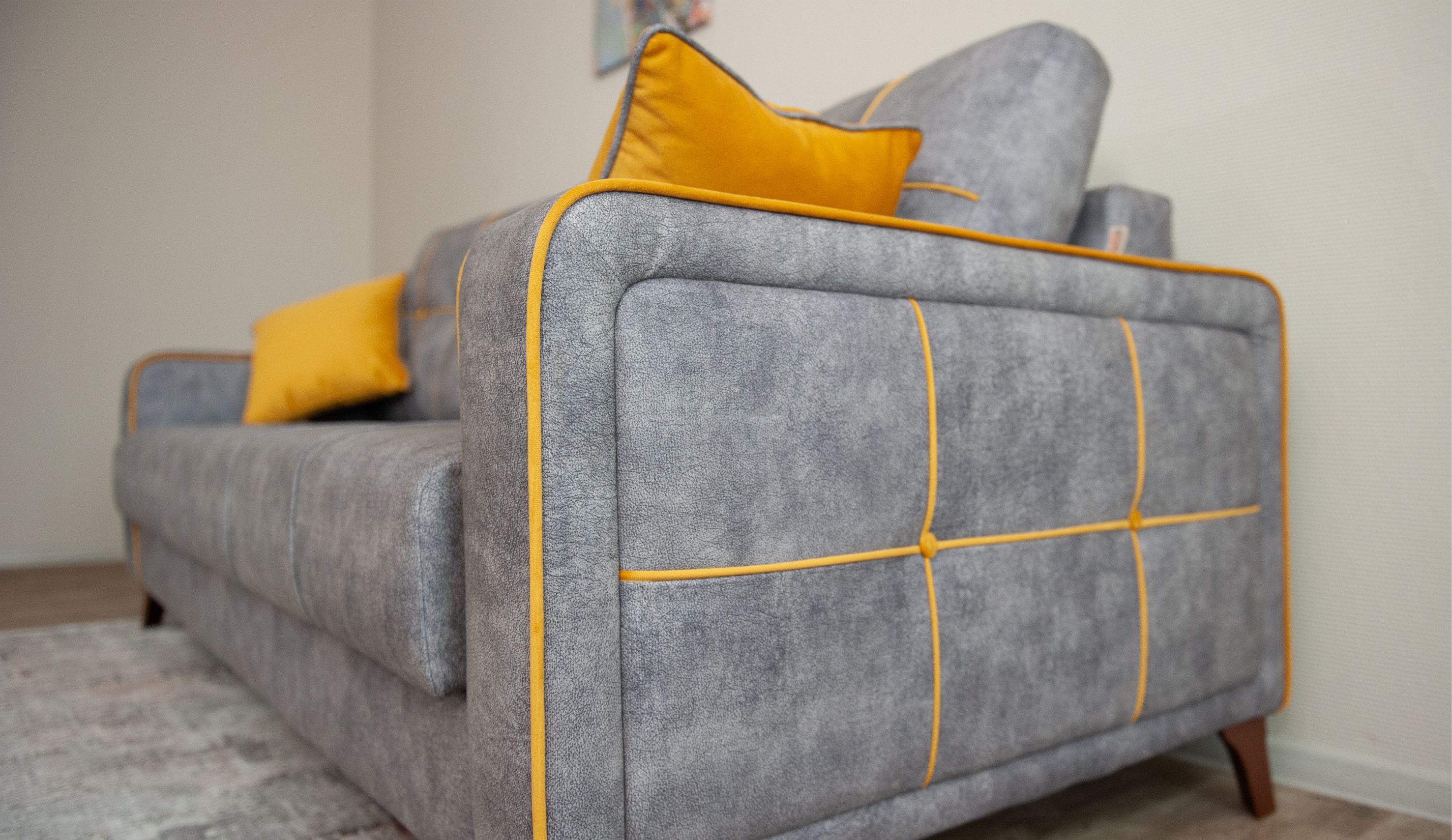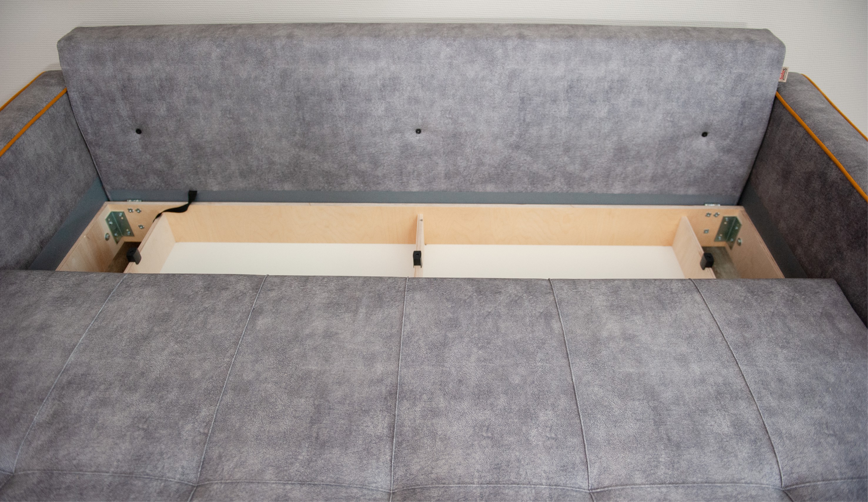 Марсель" - это диван, который впишется в любой интерьер, благодаря своему стильному и функциональному дизайну. Модель украшена оригинальными защипами на сиденье, создающими эффект объемности, и изящными боковинами в мягкой рамке с контрастной отделкой, утяжками и пуговицами. Для максимального комфорта предусмотрены большие подушки для спины и две декоративные меньшего размера. Механизм "Тик-так" обеспечивает возможность быстрой раскладки дивана в кровать с просторным ящиком для белья, выполненным из экологичной фанеры.