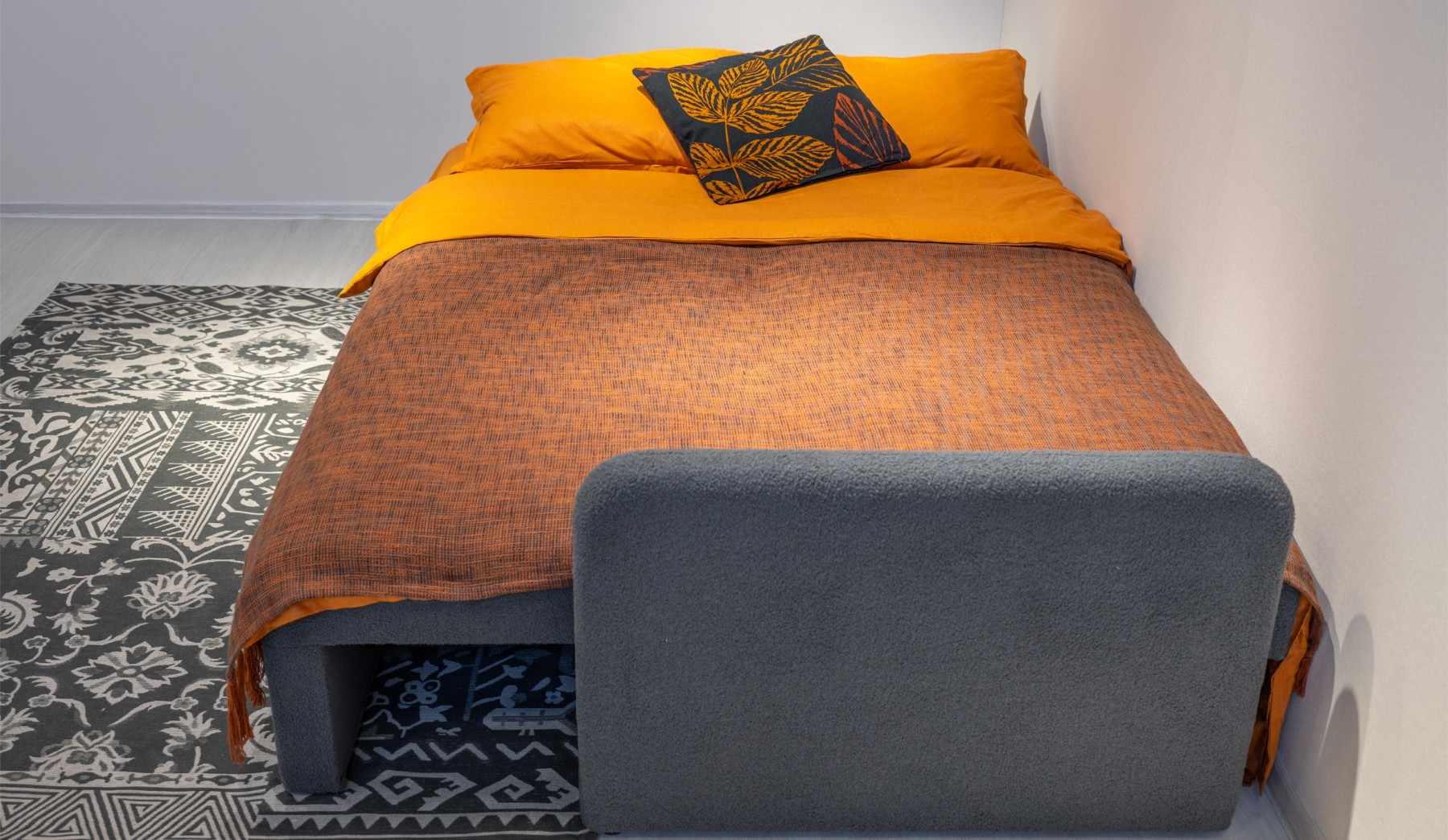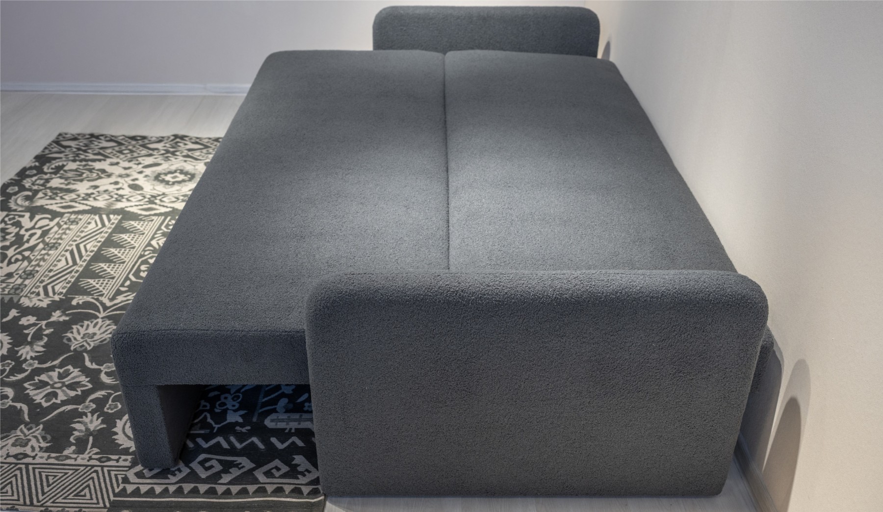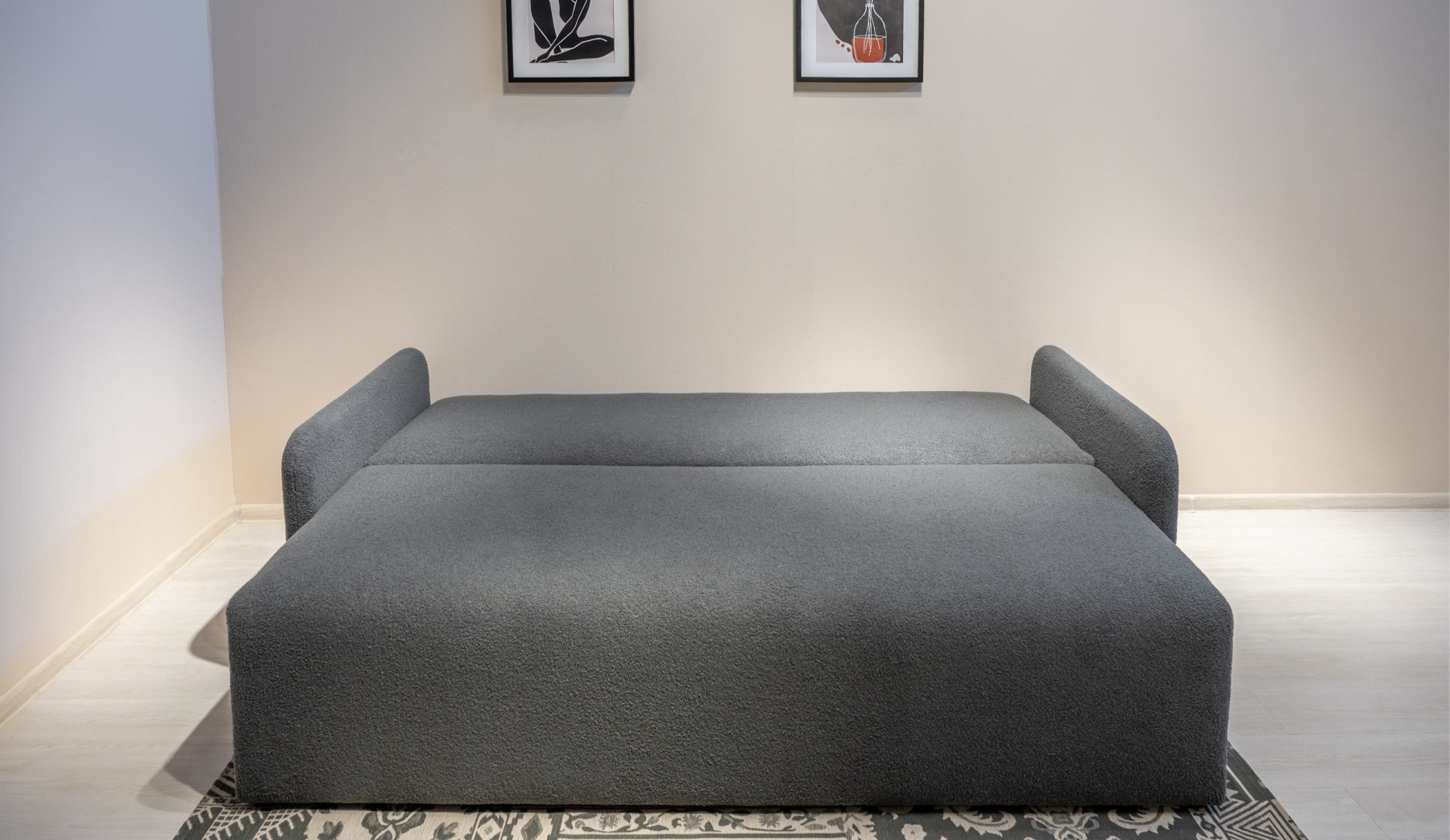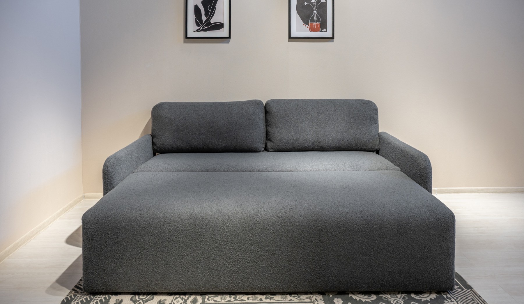 Диван в разложенном виде принимает форму просторной кровати: