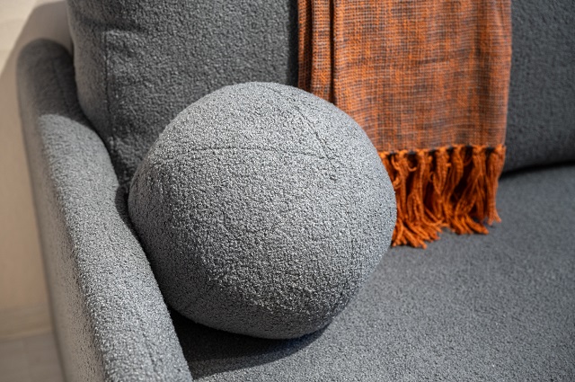• Две подушки оригинальной круглой формы гармонично дополняют образ дивана и становятся ярким акцентом, придающим интерьеру индивидуальность и характер