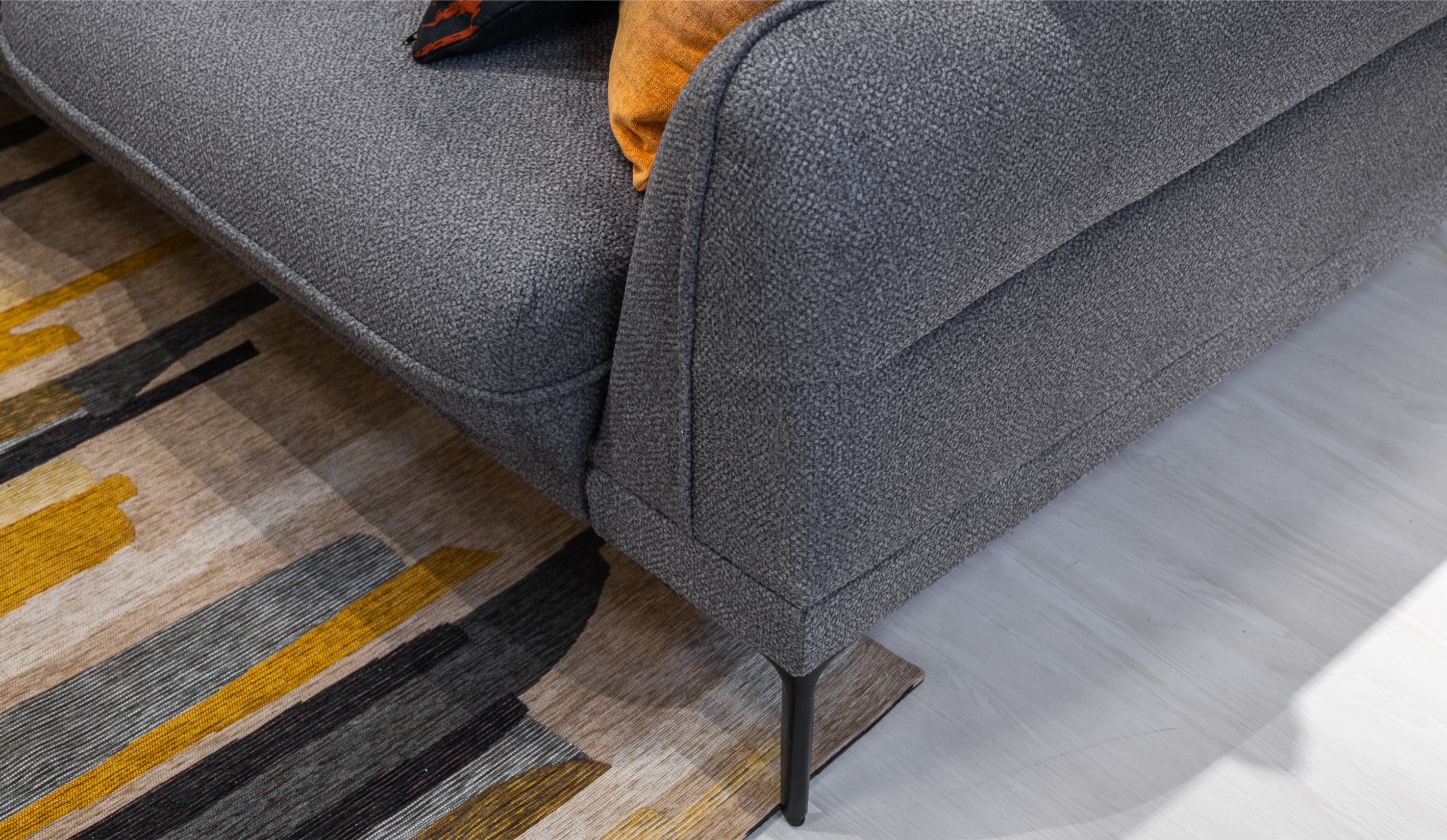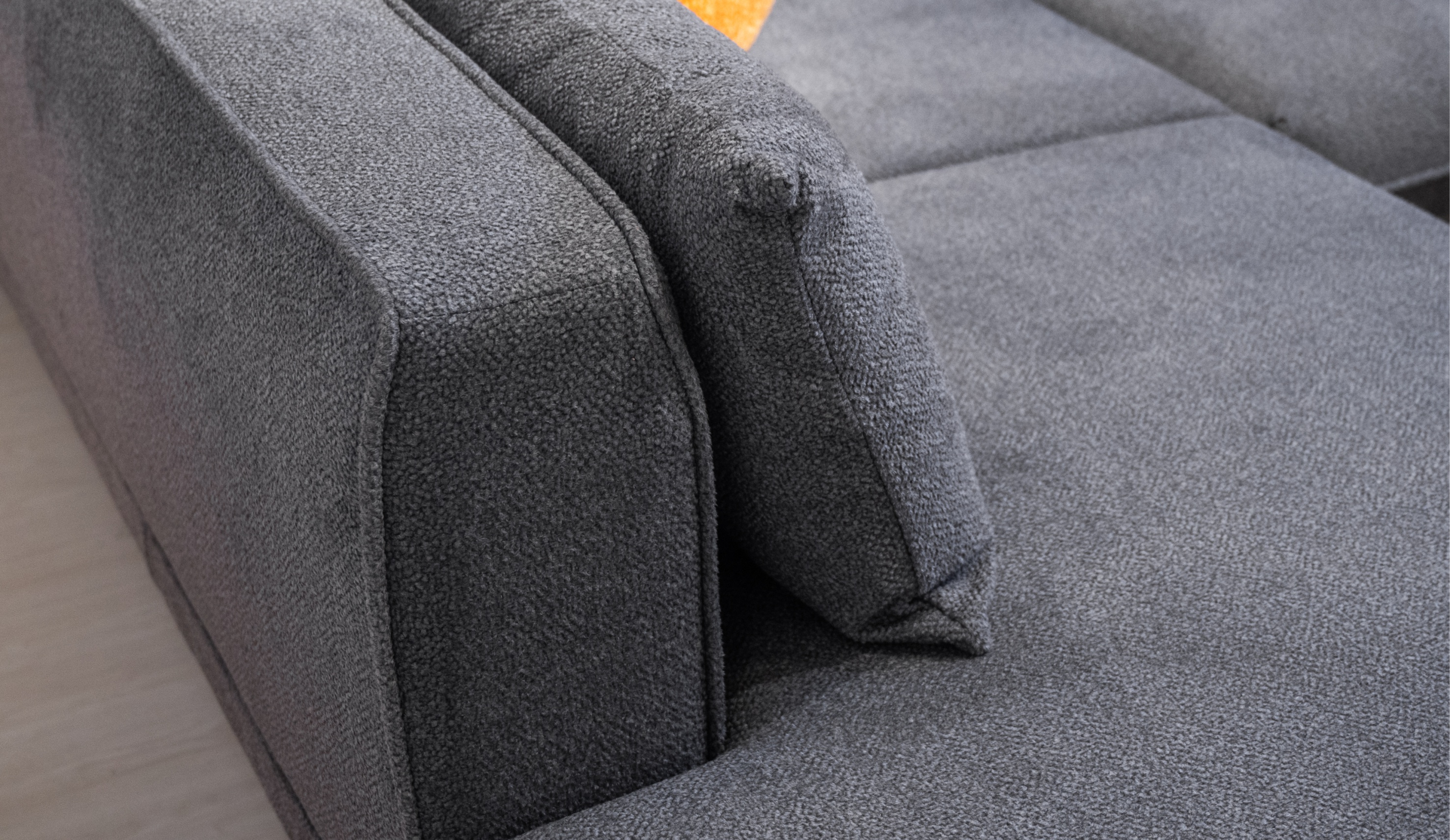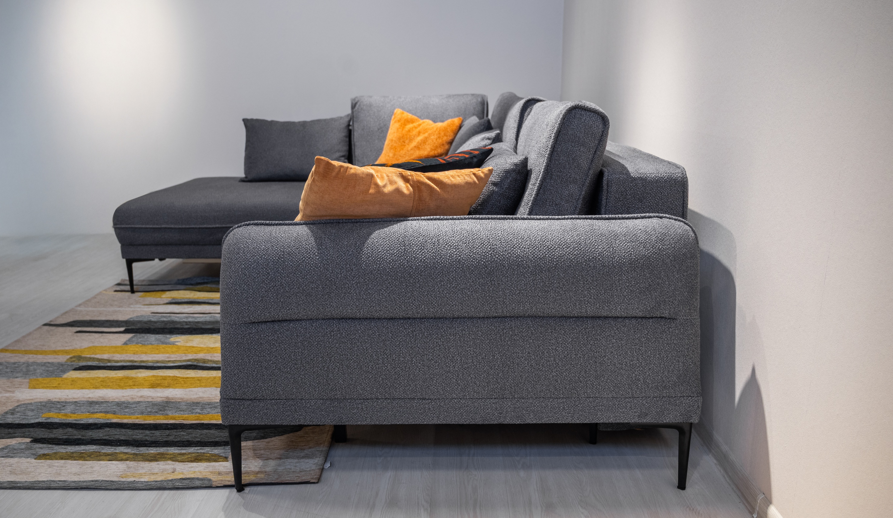 Диван Даниэль выделяется лаконичным дизайном и плавными формами, гармонично сочетая эстетику и удобство. Декоративные канты придают изделию дополнительный объем и элегантность. Утяжки на боковых частях подчеркивают мягкость конструкции, приспинные и декоративные подушки помогают подобрать оптимальное положение для комфортного отдыха. Высокие металлические ножки визуально облегчают модель и облегчают процесс уборки. Благодаря механизму пантограф, диван легко трансформируется в просторное спальное место с ортопедическим матрасом на независимом пружинном блоке. Бельевой ящик под оттоманкой предоставляет место для хранения постельных принадлежностей. Велюровая обивка с фактурой букле выглядит изысканно, одновременно сочетая приятные тактильные ощущения с высокой износостойкостью.