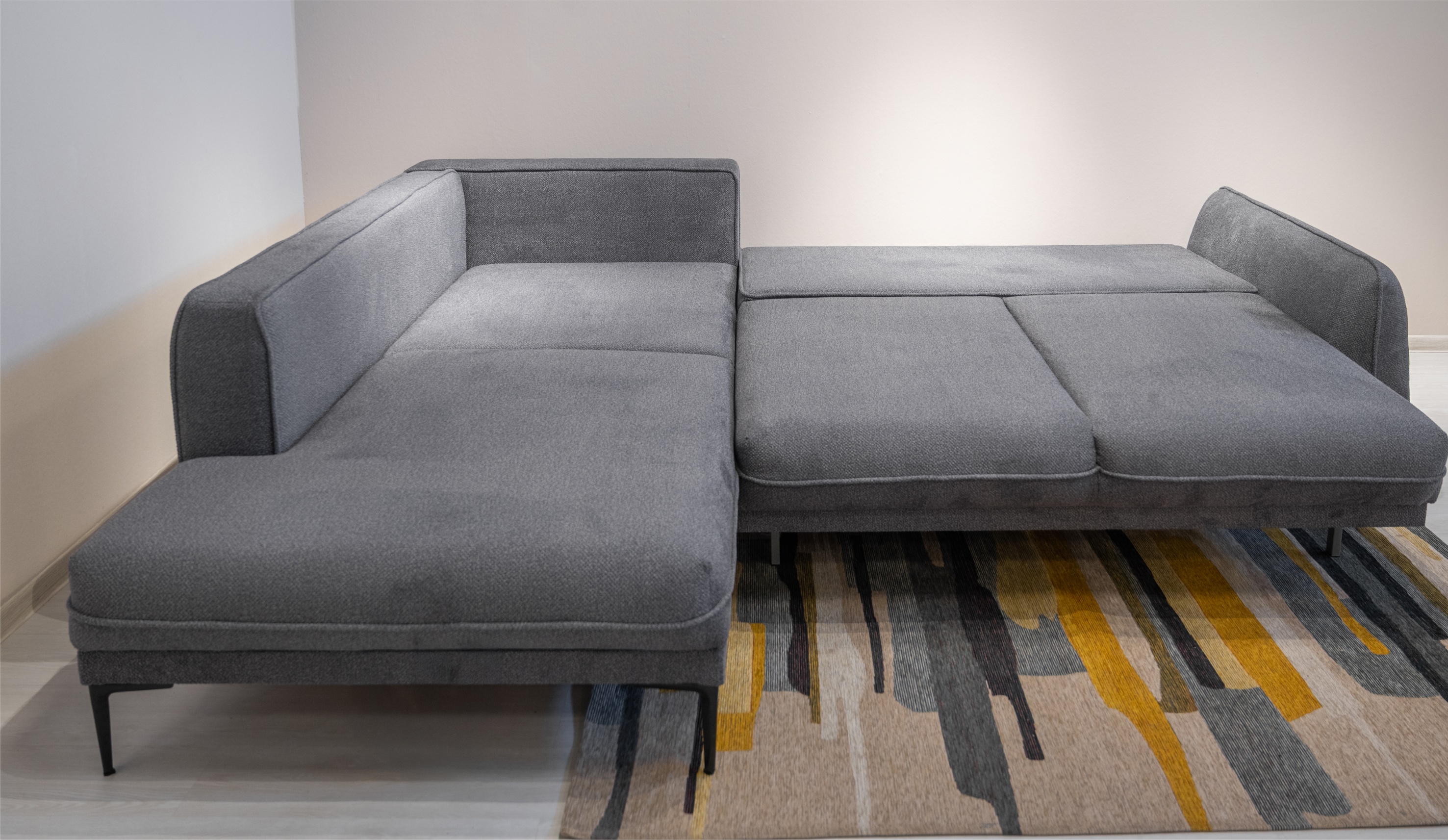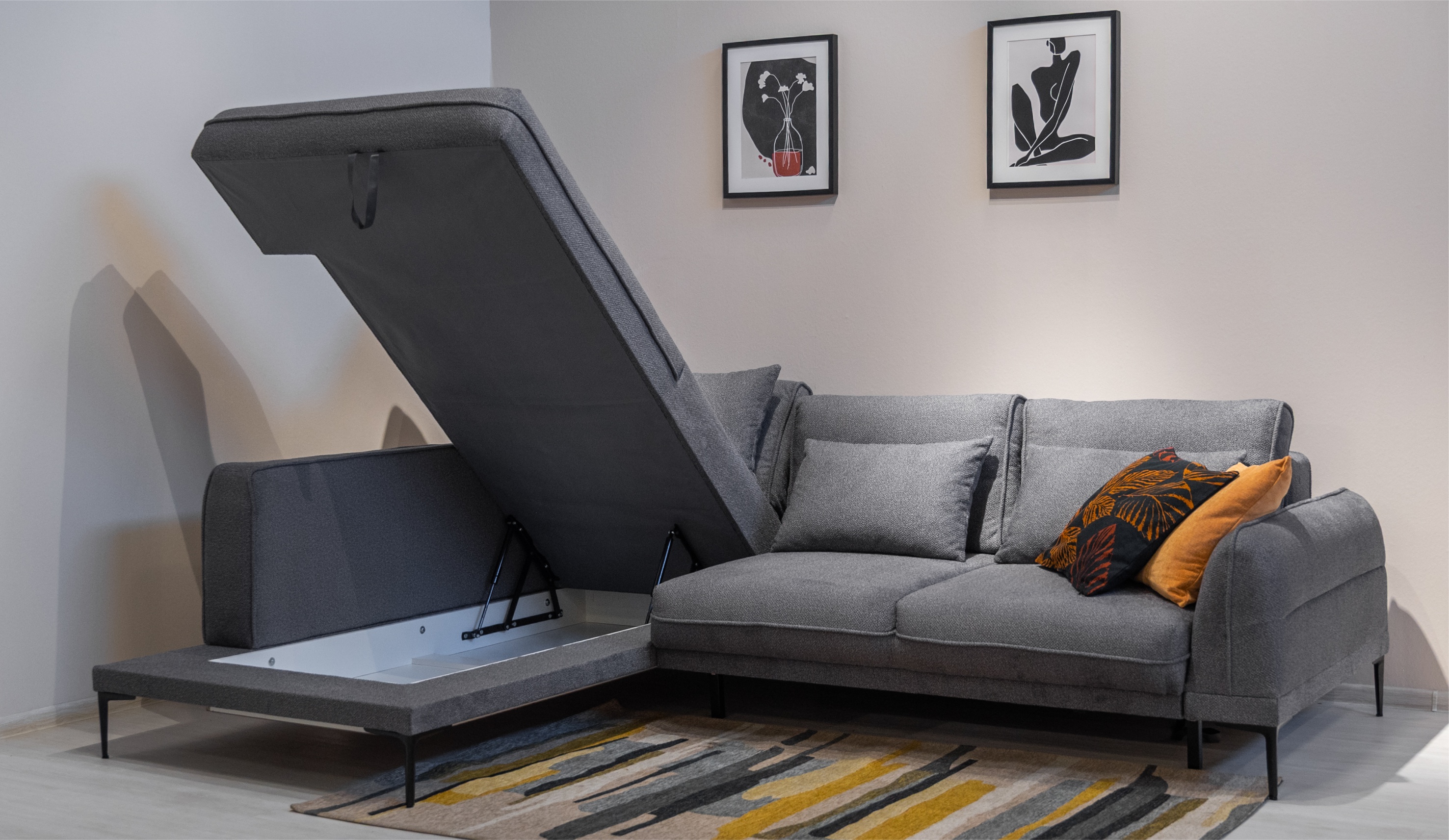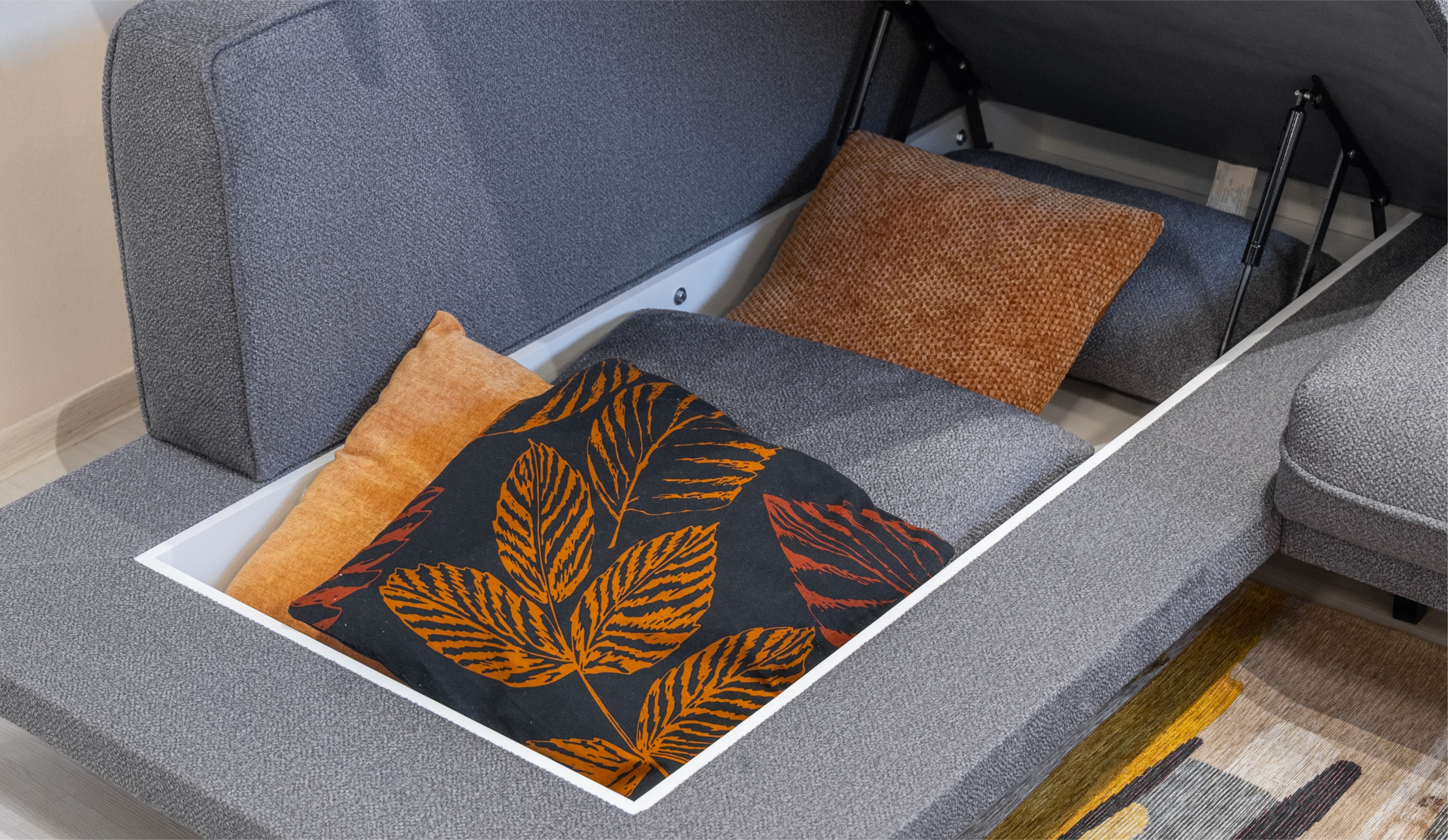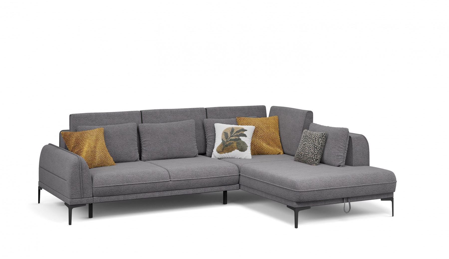 Диван Даниэль выделяется лаконичным дизайном и плавными формами, гармонично сочетая эстетику и удобство. Декоративные канты придают изделию дополнительный объем и элегантность. Утяжки на боковых частях подчеркивают мягкость конструкции, приспинные и декоративные подушки помогают подобрать оптимальное положение для комфортного отдыха. Высокие металлические ножки визуально облегчают модель и облегчают процесс уборки. Благодаря механизму пантограф, диван легко трансформируется в просторное спальное место с ортопедическим матрасом на независимом пружинном блоке. Бельевой ящик под оттоманкой предоставляет место для хранения постельных принадлежностей. Велюровая обивка с фактурой букле выглядит изысканно, одновременно сочетая приятные тактильные ощущения с высокой износостойкостью.