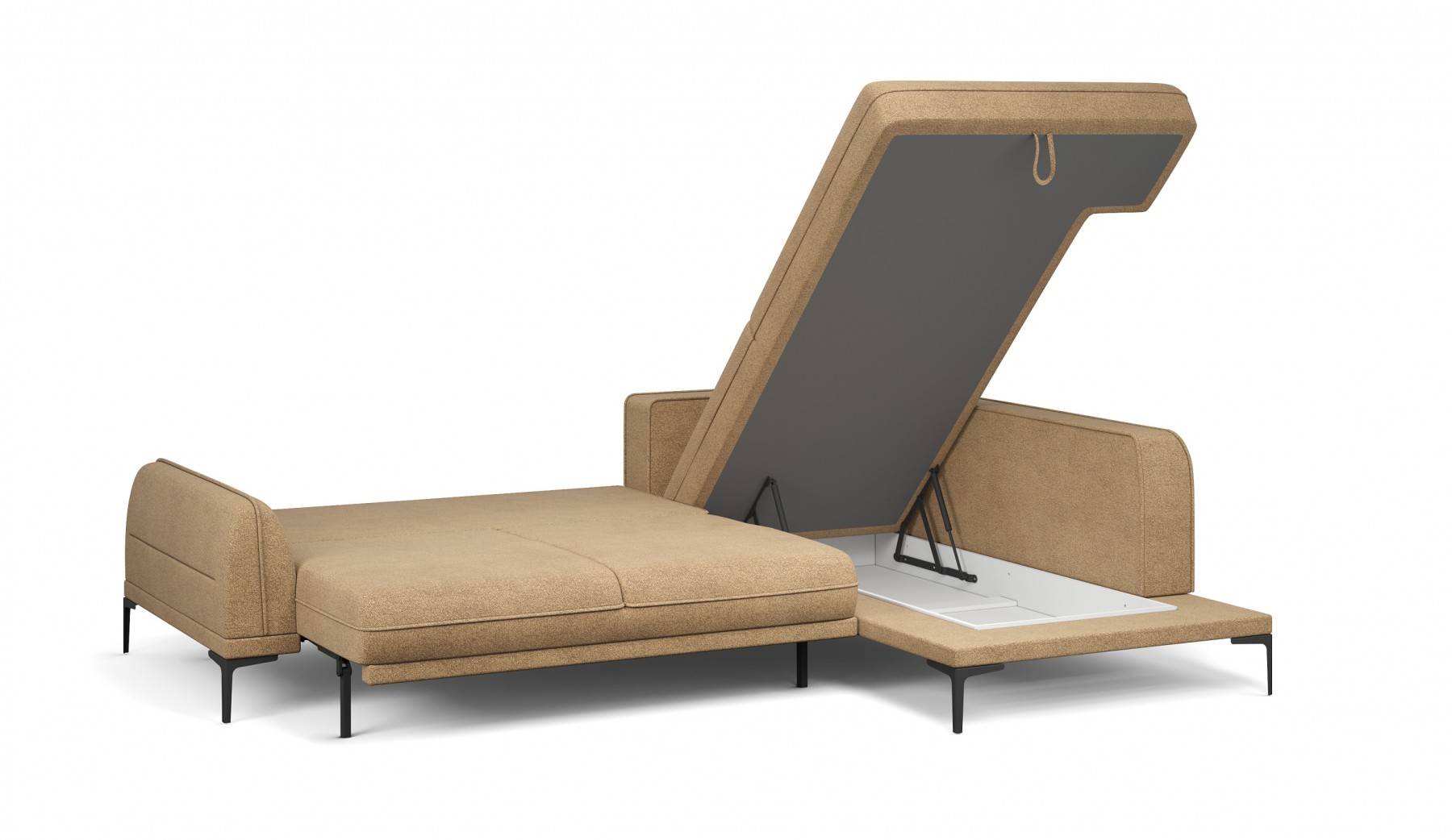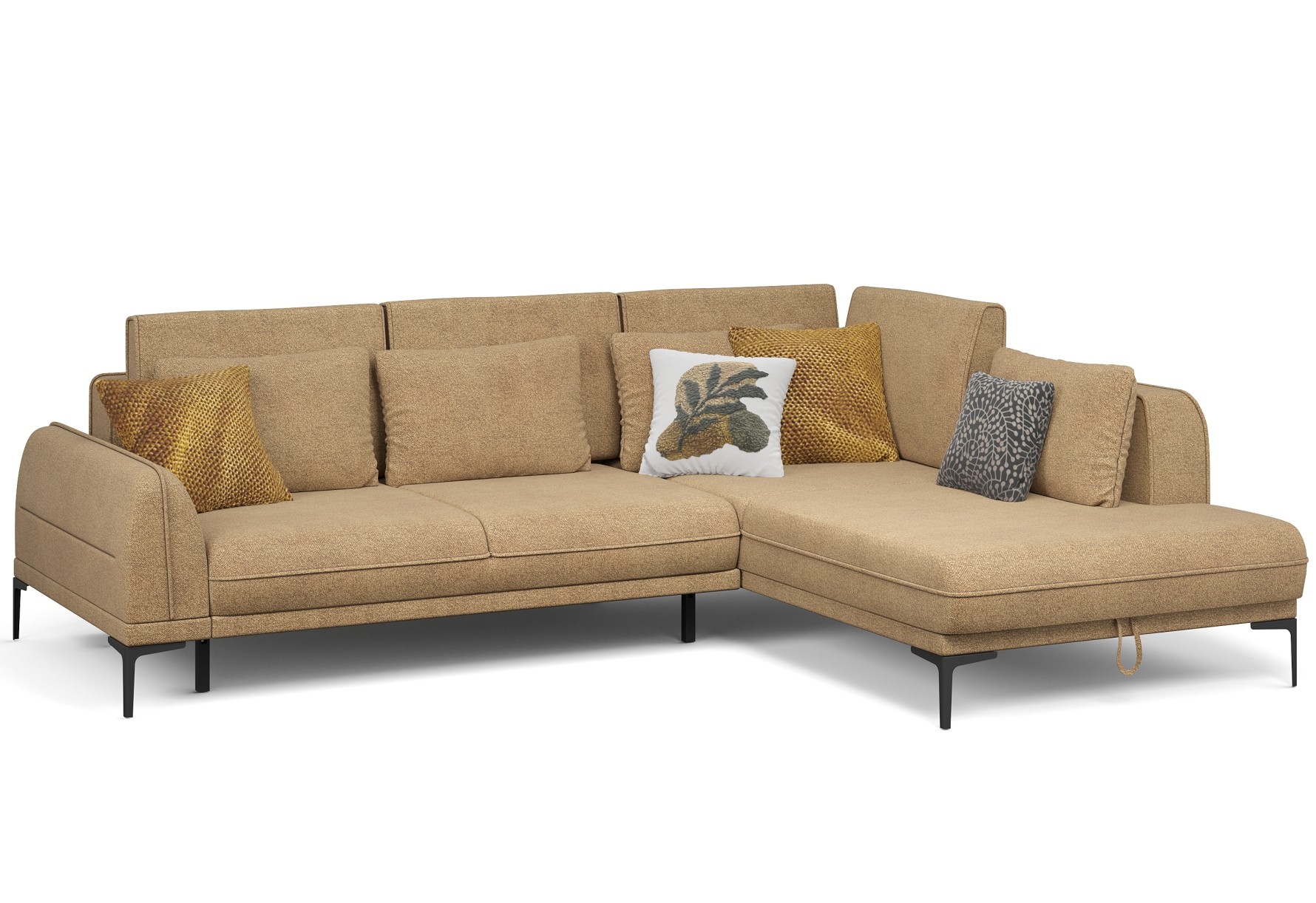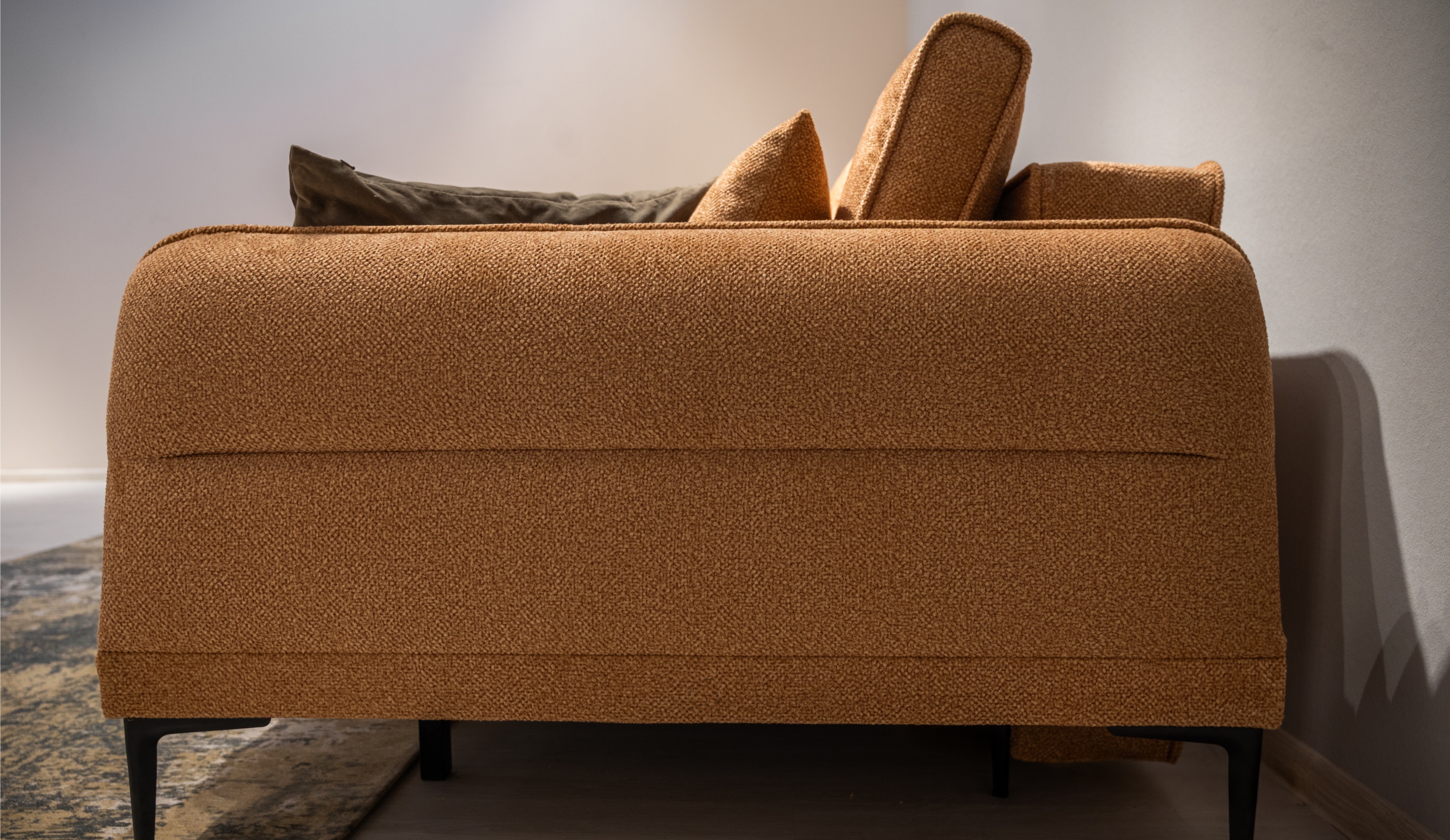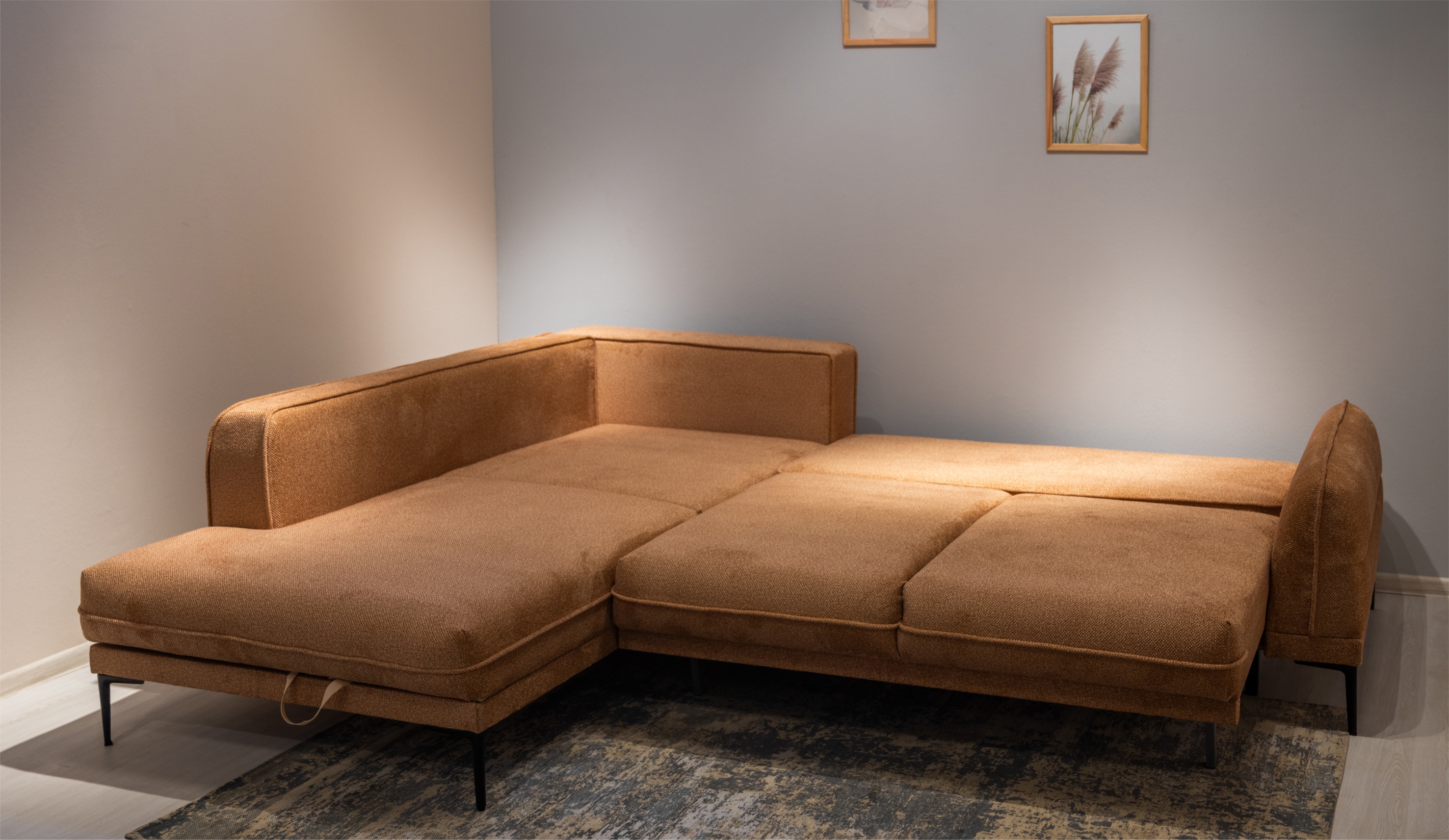 Диван Даниэль выделяется лаконичным дизайном и плавными формами, гармонично сочетая эстетику и удобство. Декоративные канты придают изделию дополнительный объем и элегантность. Утяжки на боковых частях подчеркивают мягкость конструкции, приспинные и декоративные подушки помогают подобрать оптимальное положение для комфортного отдыха. Высокие металлические ножки визуально облегчают модель и облегчают процесс уборки. Благодаря механизму пантограф, диван легко трансформируется в просторное спальное место с ортопедическим матрасом на независимом пружинном блоке. Бельевой ящик под оттоманкой предоставляет место для хранения постельных принадлежностей. Велюровая обивка с фактурой букле выглядит изысканно, одновременно сочетая приятные тактильные ощущения с высокой износостойкостью.