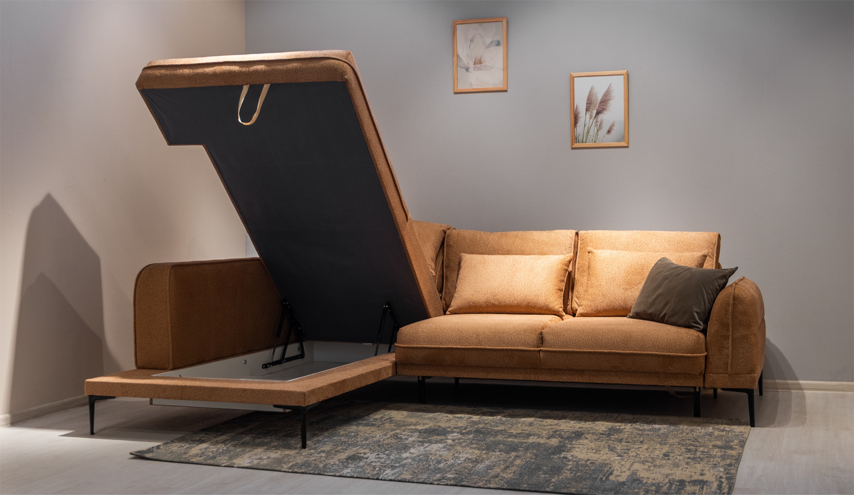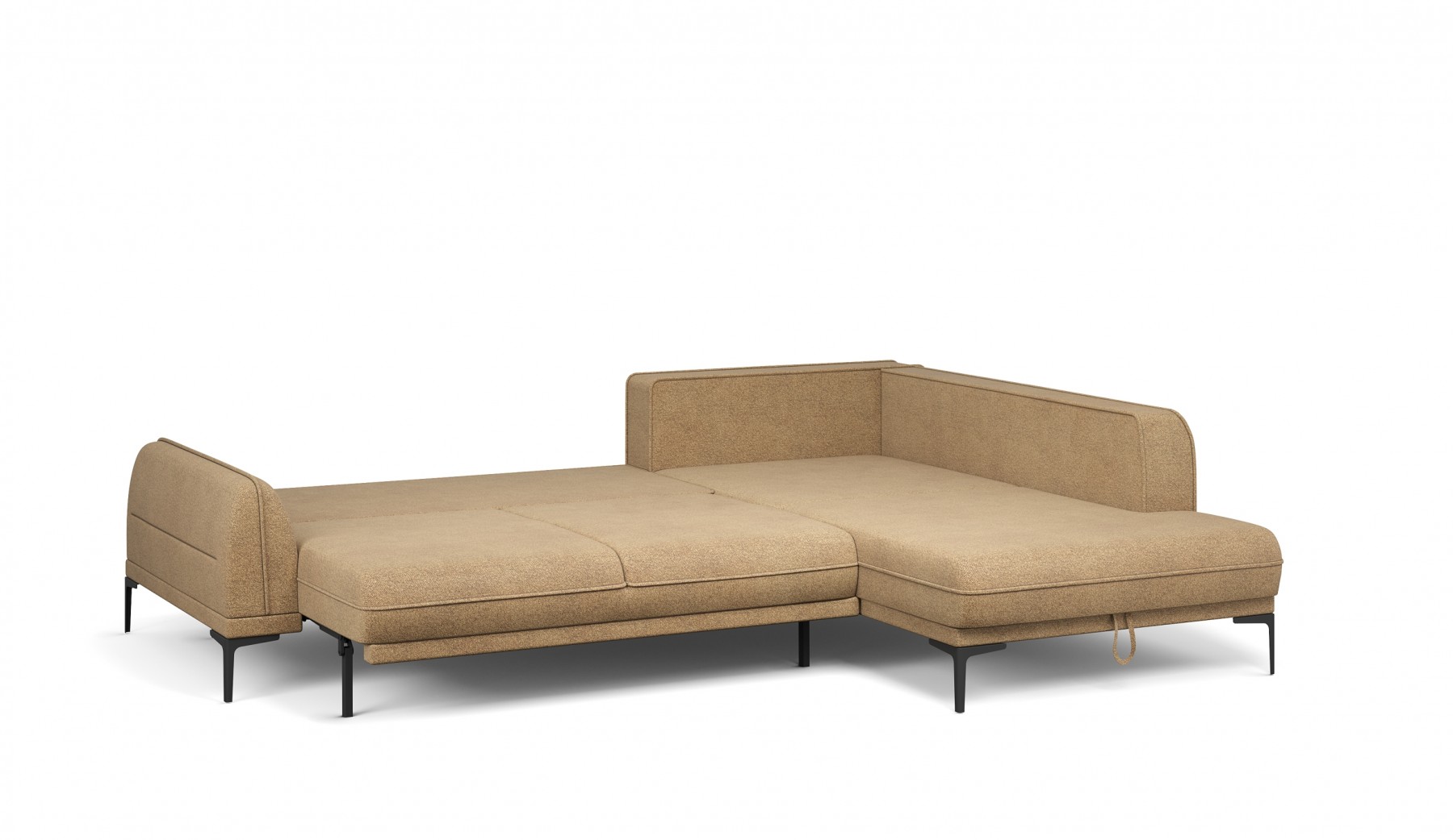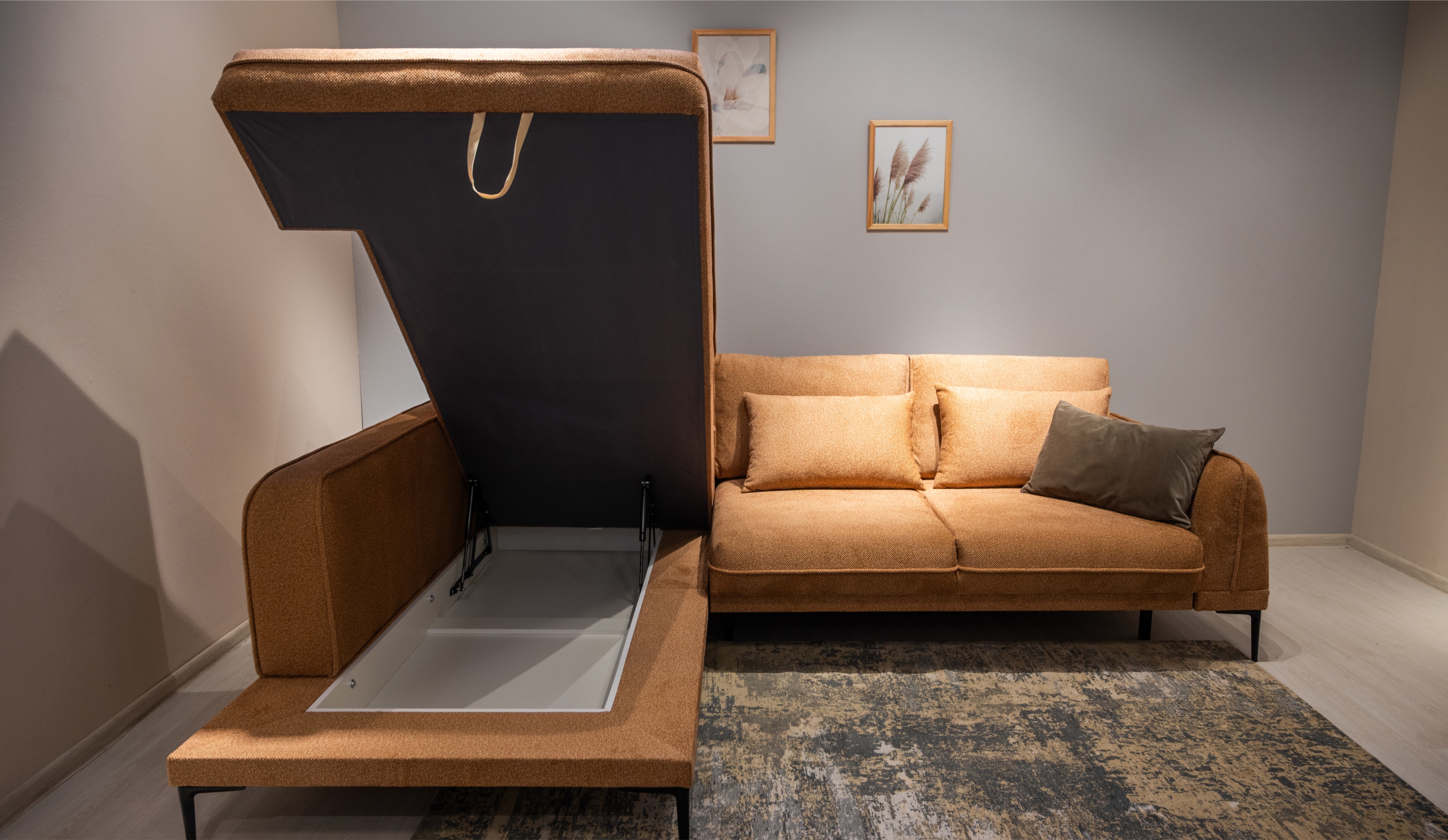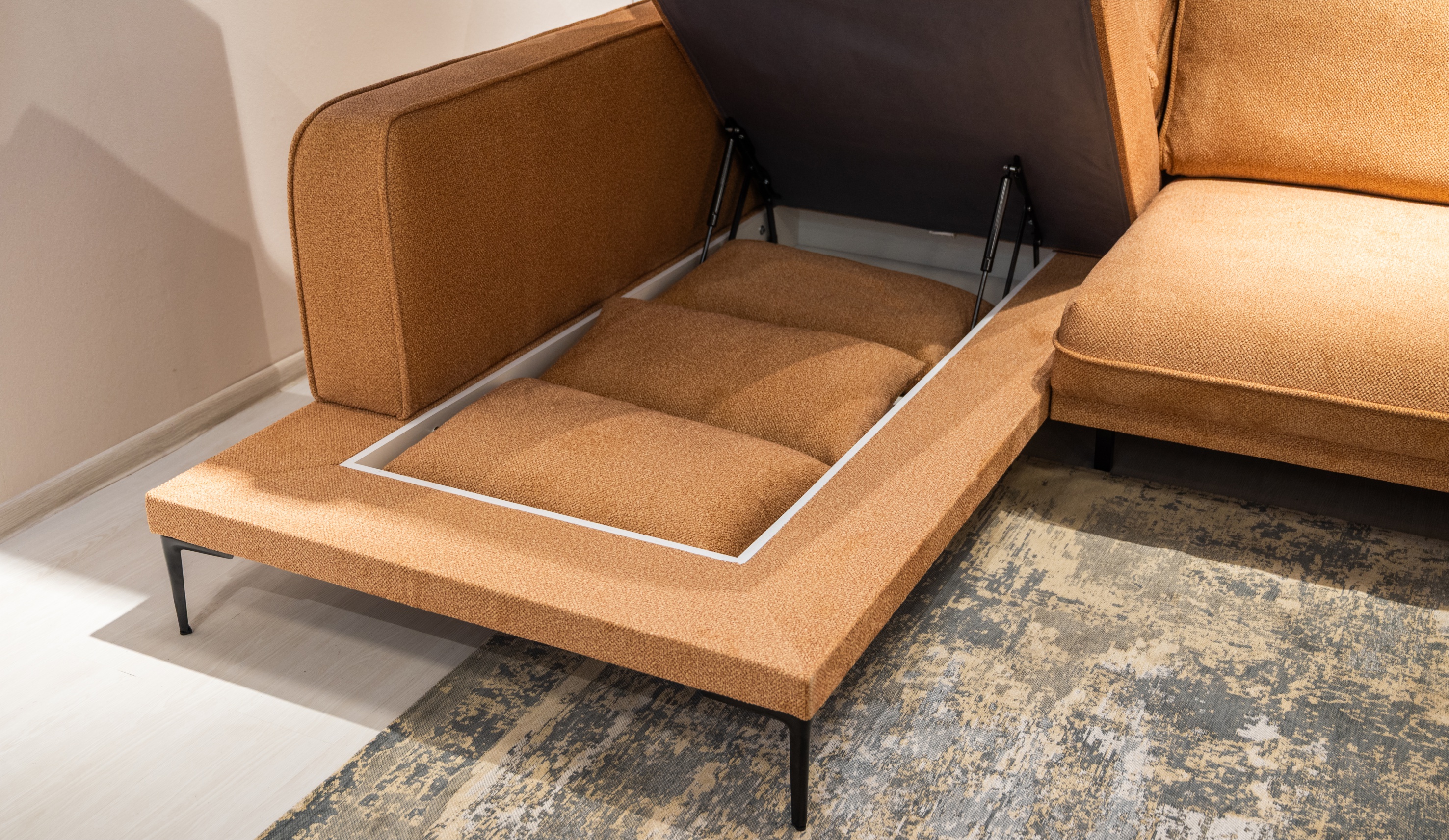 Диван Даниэль выделяется лаконичным дизайном и плавными формами, гармонично сочетая эстетику и удобство. Декоративные канты придают изделию дополнительный объем и элегантность. Утяжки на боковых частях подчеркивают мягкость конструкции, приспинные и декоративные подушки помогают подобрать оптимальное положение для комфортного отдыха. Высокие металлические ножки визуально облегчают модель и облегчают процесс уборки. Благодаря механизму пантограф, диван легко трансформируется в просторное спальное место с ортопедическим матрасом на независимом пружинном блоке. Бельевой ящик под оттоманкой предоставляет место для хранения постельных принадлежностей. Велюровая обивка с фактурой букле выглядит изысканно, одновременно сочетая приятные тактильные ощущения с высокой износостойкостью.