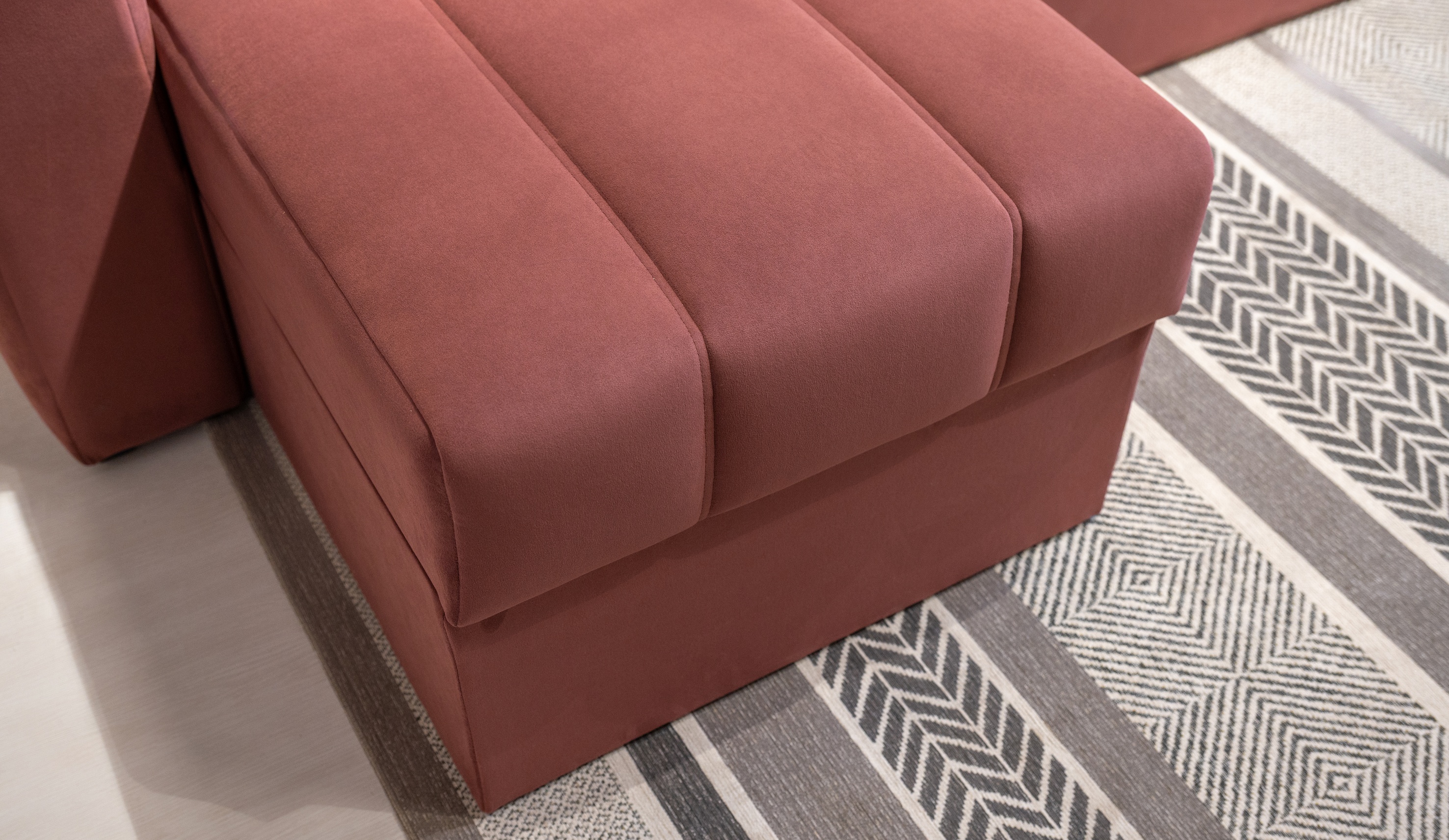 Стильный и практичный диван "Порту" разработан с учётом современных требований к комфорту и эргономике. Благодаря лаконичному дизайну с вертикальной стёжкой и мягким формам, он легко адаптируется под любой интерьер. Механизм трансформации обеспечивает быстрое и удобное превращение в спальное место с ортопедическим матрасом на независимых пружинах, способствующим полноценному отдыху. Универсальная конструкция оттоманки позволяет установить её с любой стороны, а просторный отсек для хранения под ней сопоставим по объёму с небольшим шкафом - идеальное решение для рационального использования пространства.