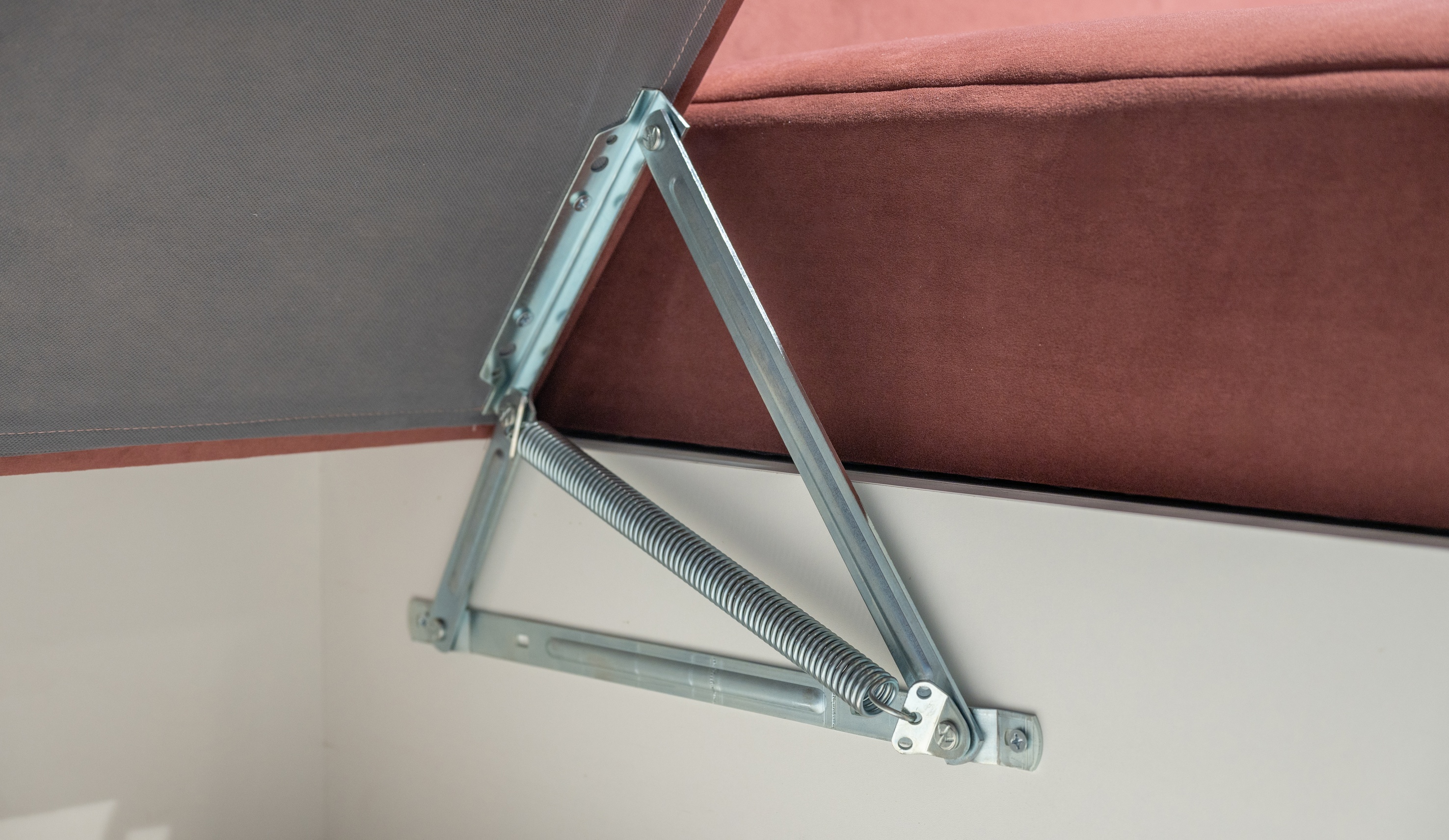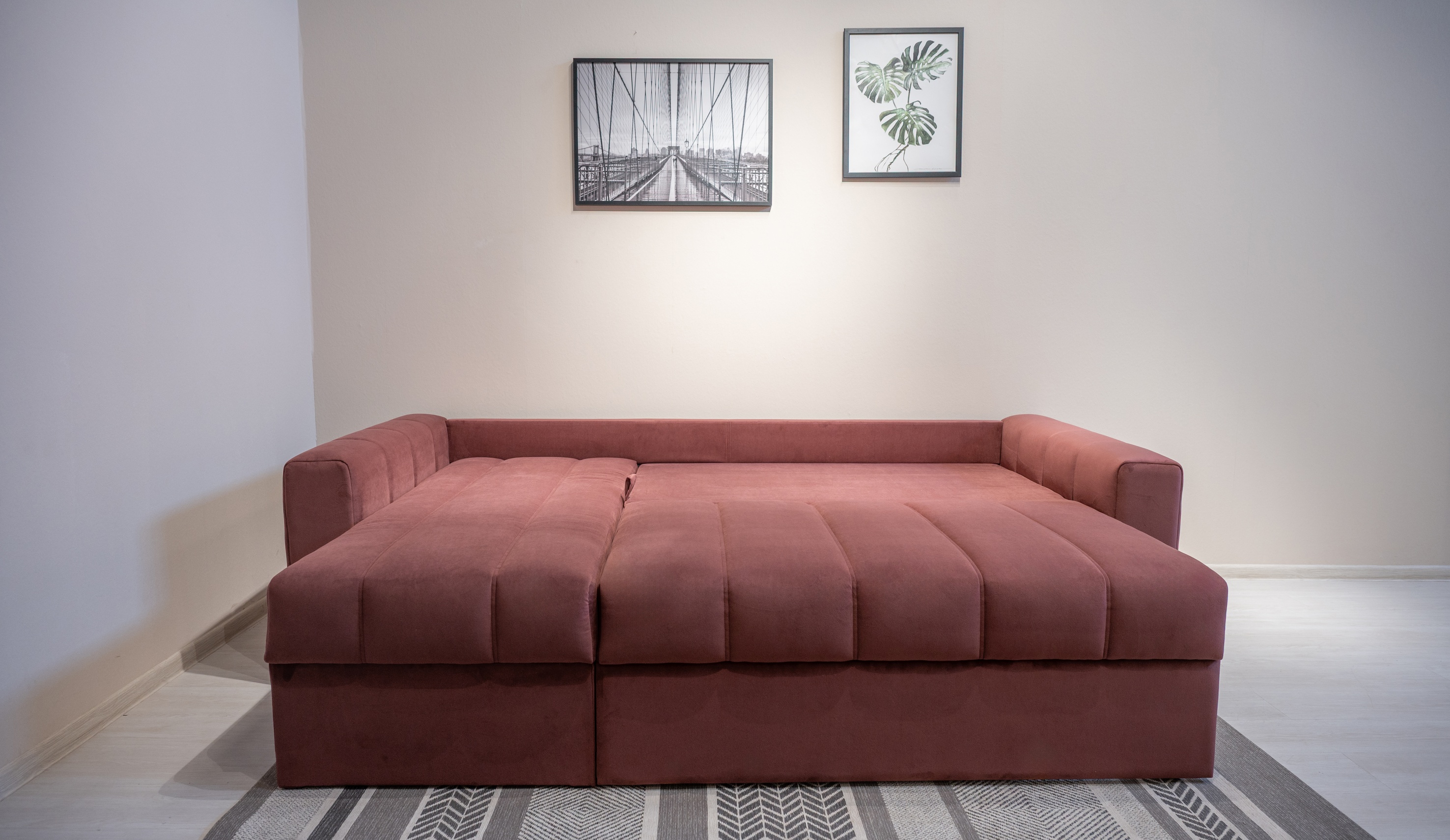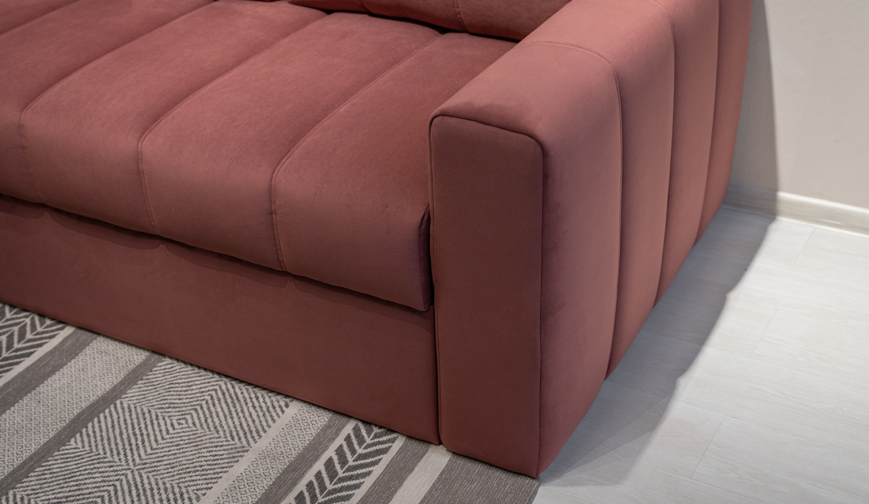 • Металлические направляющие с закруглениями обеспечивают лёгкое и удобное раскладывание, а трёхроликовая система предотвращает перекосы, защищая конструкцию и продлевая срок службы дивана