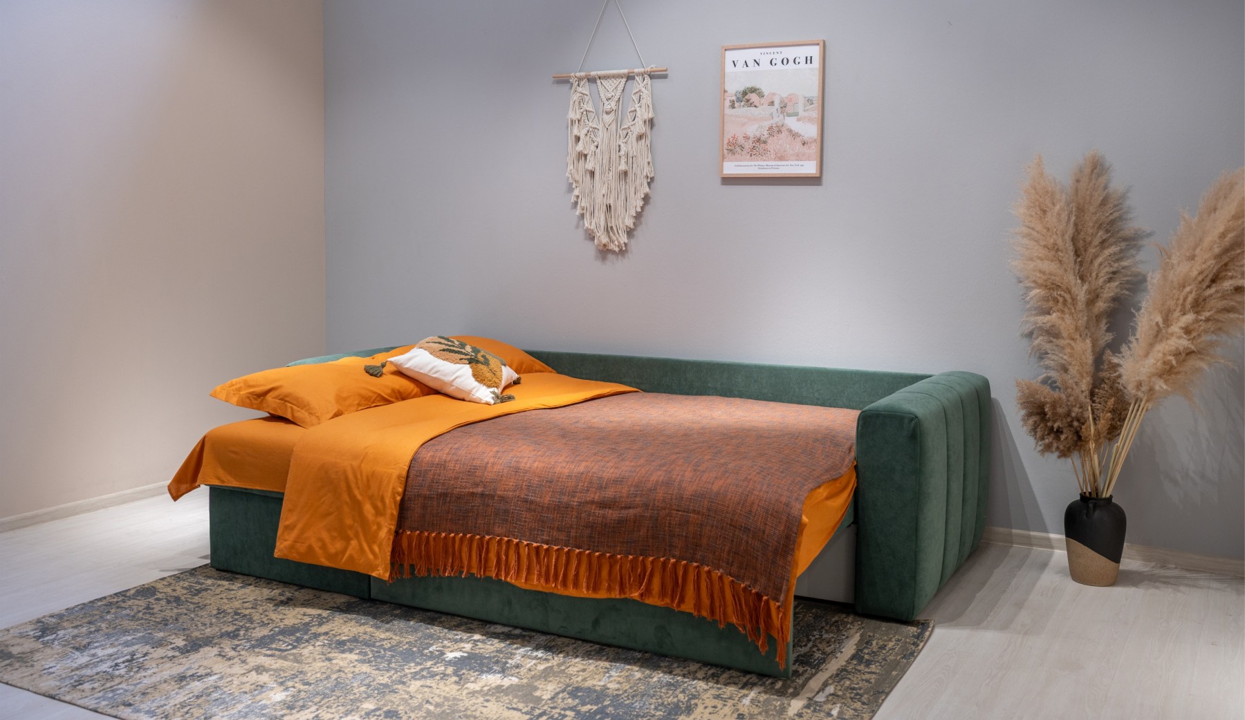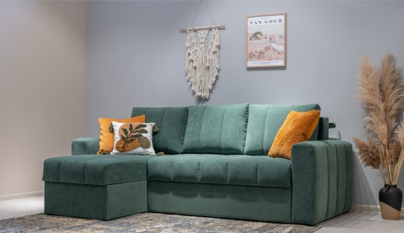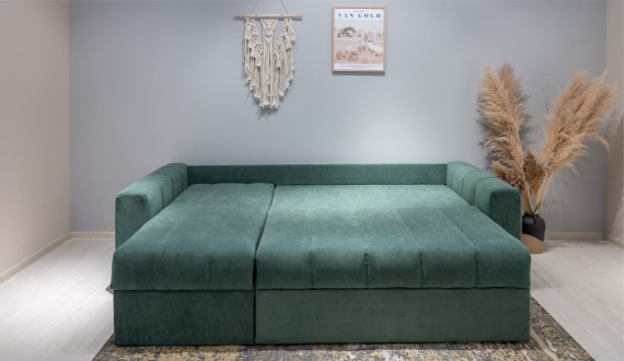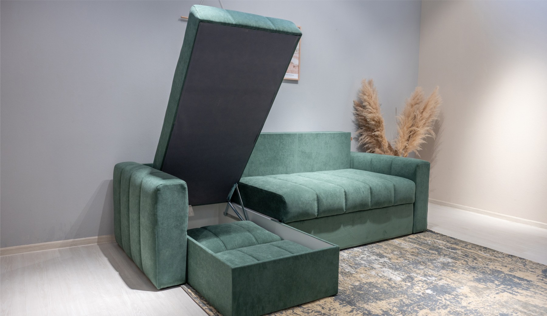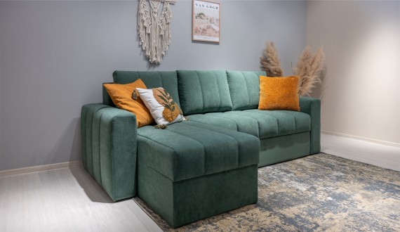Стильный и практичный диван "Порту" разработан с учётом современных требований к комфорту и эргономике. Благодаря лаконичному дизайну с вертикальной стёжкой и мягким формам, он легко адаптируется под любой интерьер. Механизм трансформации обеспечивает быстрое и удобное превращение в спальное место с ортопедическим матрасом на независимых пружинах, способствующим полноценному отдыху. Универсальная конструкция оттоманки позволяет установить её с любой стороны, а просторный отсек для хранения под ней сопоставим по объёму с небольшим шкафом - идеальное решение для рационального использования пространства.