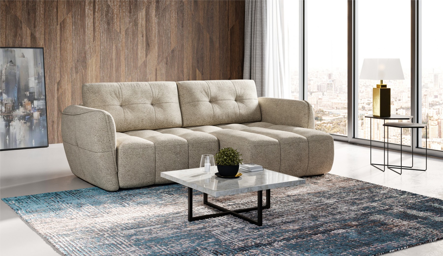 Современный диван Треви сочетает в себе эксклюзивный дизайн и функциональность. Его округлый силуэт и подлокотники с декоративным кантом добавляют элегантности, а мягкое стеганое сиденье с глубокой посадкой и качественная обивка обеспечивают необыкновенно уютную атмосферу. Диван оснащён двумя подушками для дополнительного удобства и легко трансформируется в просторное спальное место благодаря механизму "тик-так". Вместительный бельевой короб удобен для хранения, делая этот диван идеальным выбором для современного интерьера. Универсальный угол в диване позволяет легко адаптировать его под любое пространство и изменять интерьер без дополнительных затрат.