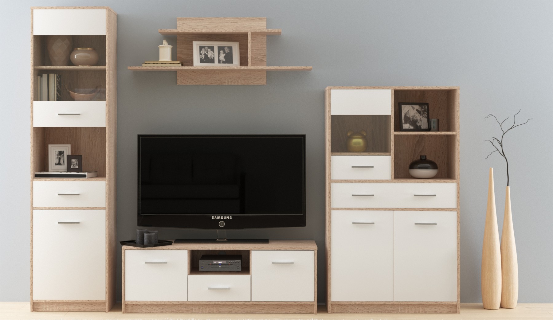 Для удобства размещения одежды в стенке предусмотрены вместительные закрытые полки и надежная металлическая овальная штанга, а для книг и декоративных аксессуаров — функциональные открытые полки и витрины