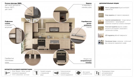 Кухня Равенна Спарк 2,4 м с витринами