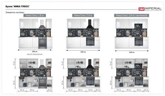 Кухня Ника Глосс 2,4м с вытяжкой