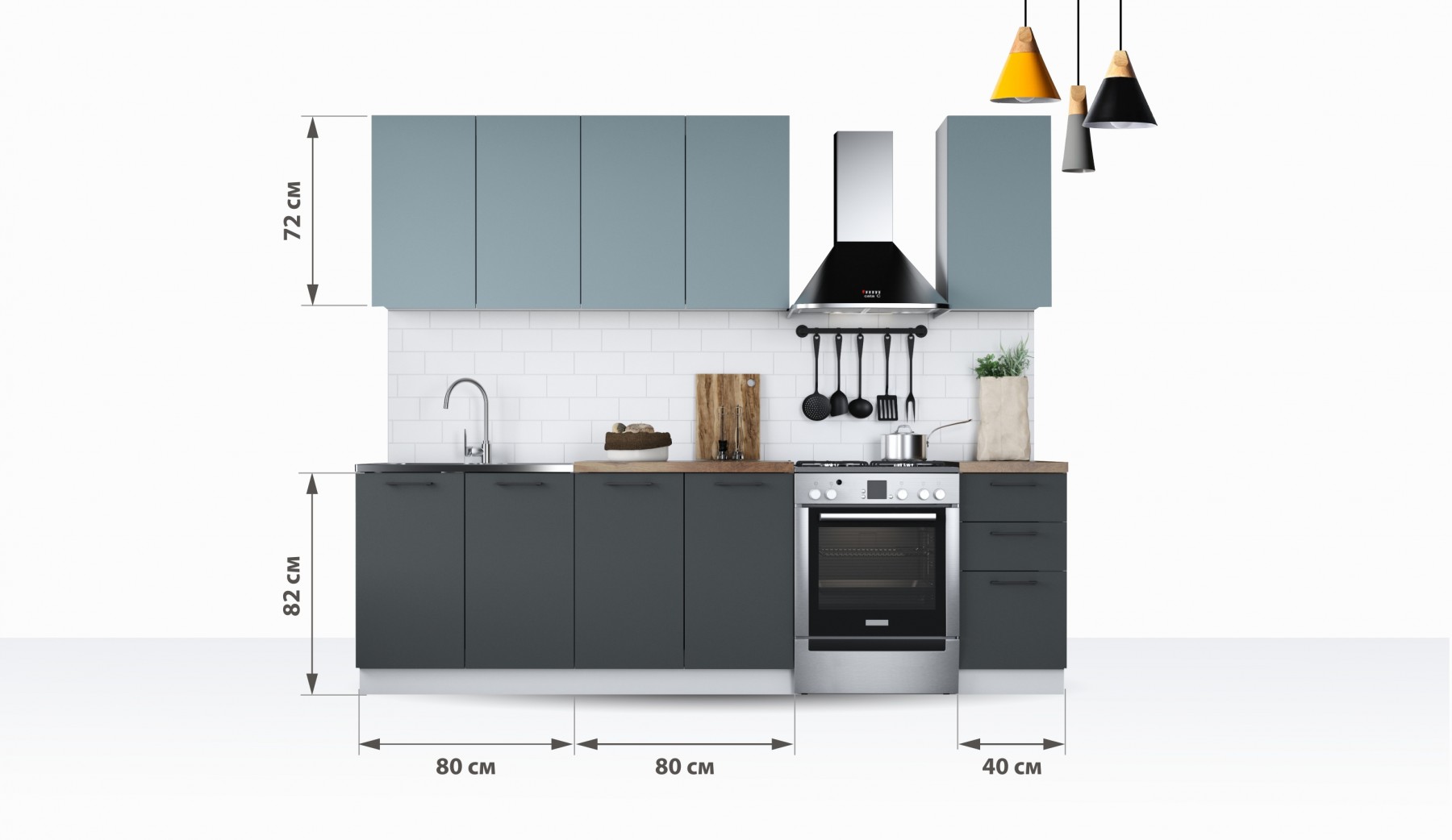 Кухня Равенна Сити подходит для интерьеров в стиле экоминимализм, лофт, сканди. Цветовое решение фасадов – гармоничное сочетание мягких природных оттенков с брутальными темными тонами. Покрытия имитируют фактуры природных материалов: натурального дерева, бетона, а матовая гладкая поверхность в цвете «сумеречный голубой» и «антрацит» имеет благородный и элегантный вид. Все это создает атмосферу умиротворения, уюта. Корпус и фасады шкафов выполнены из ЛДСП. Отсутствие лицевой фурнитуры на верхних модулях формирует стильный футуристический дизайн, визуально расширяет помещение, исключены повреждения соседних модулей при открывании углового шкафа, за кухней легко ухаживать. Столешница в комплект не входит, можно заказать у нас в размер Вашей кухни.