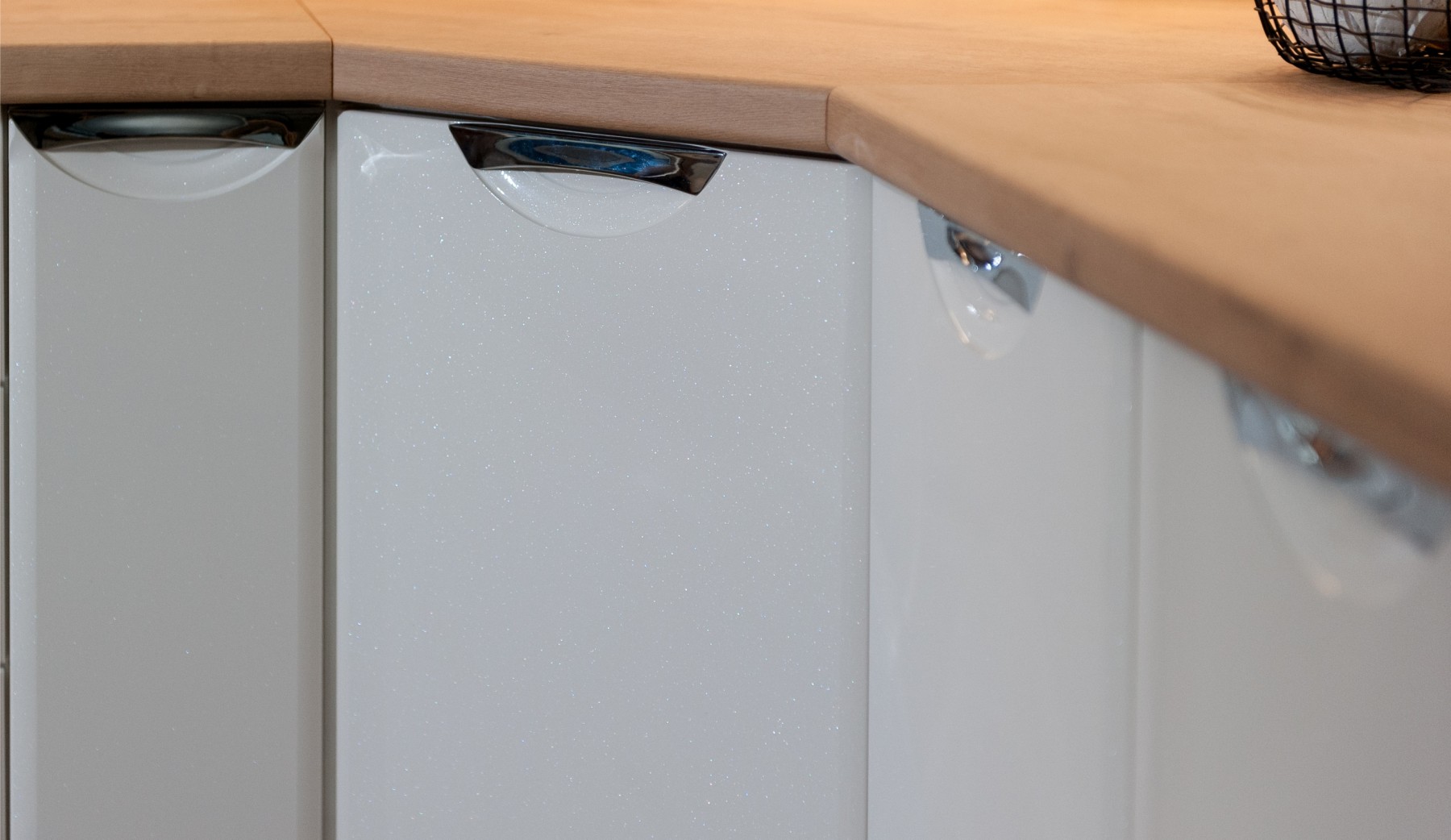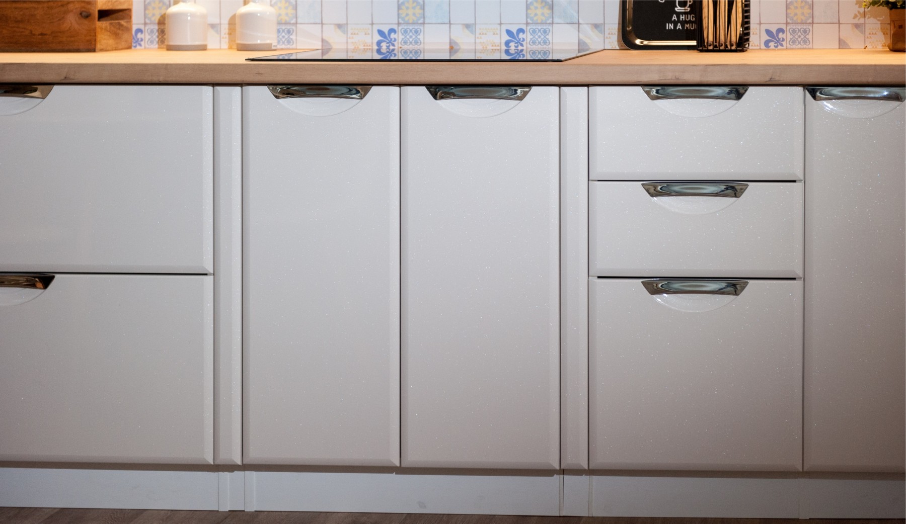 Металлические ручки не выступают за пределы плоскости фасада - актуально для тех, у кого небольшая кухня и маленькие дети