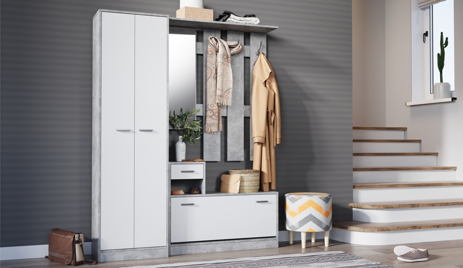 Интер – это современная прихожая в стиле минимализма, минимум декора, максимум функционала. Компактная и вместительная, с небольшой глубиной поможет правильно организовать пространство в помещении даже с небольшой площадью. Прихожая включает в себя необходимые модули: вешалка с крючками, вместительные обувницы, выдвижные ящики для мелочей, зеркало, шкаф с распашными дверями, выдвижной вешалкой и полками. Модное сочетание нейтральных природных цветов наполнит комнату светом, визуально увеличит пространство. Прихожая подойдет тем, кто любит практичность и разумность.