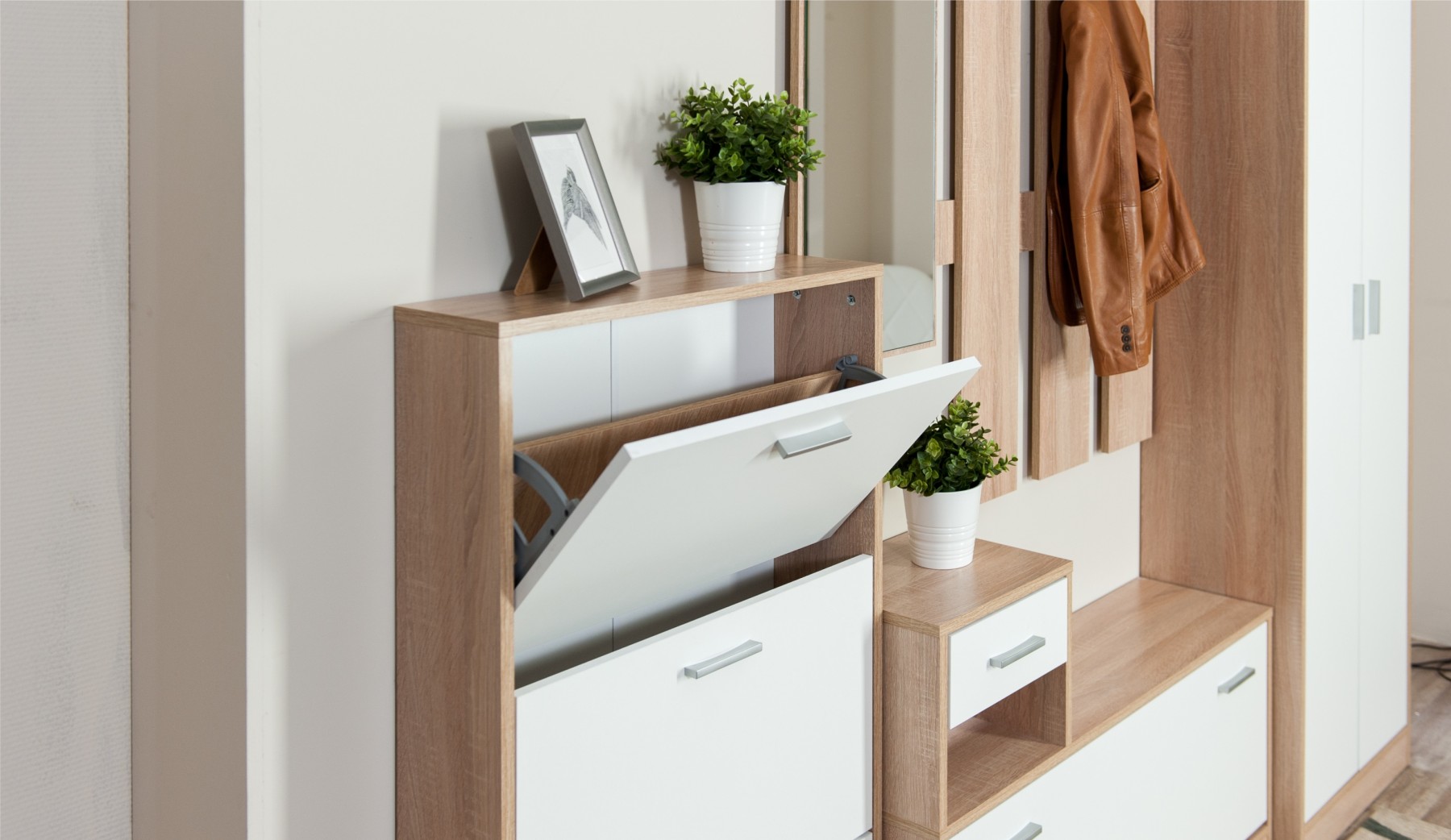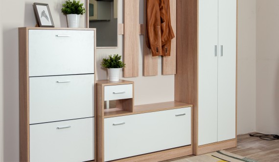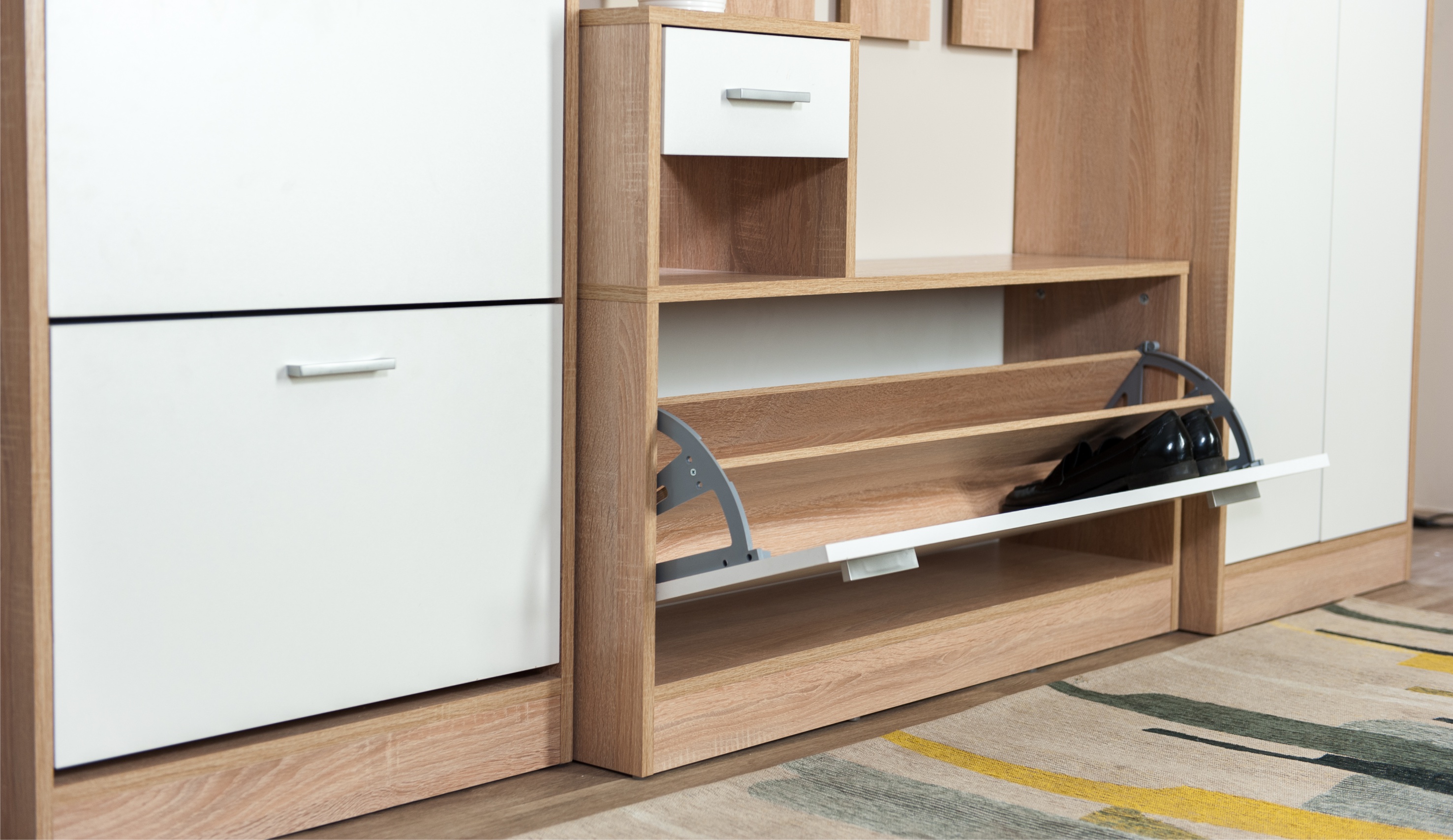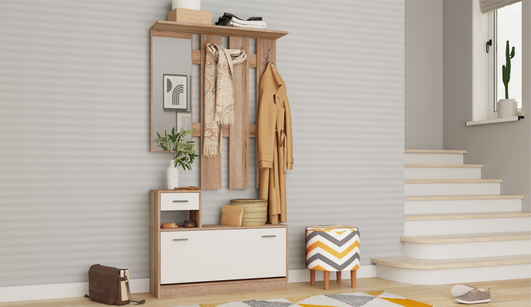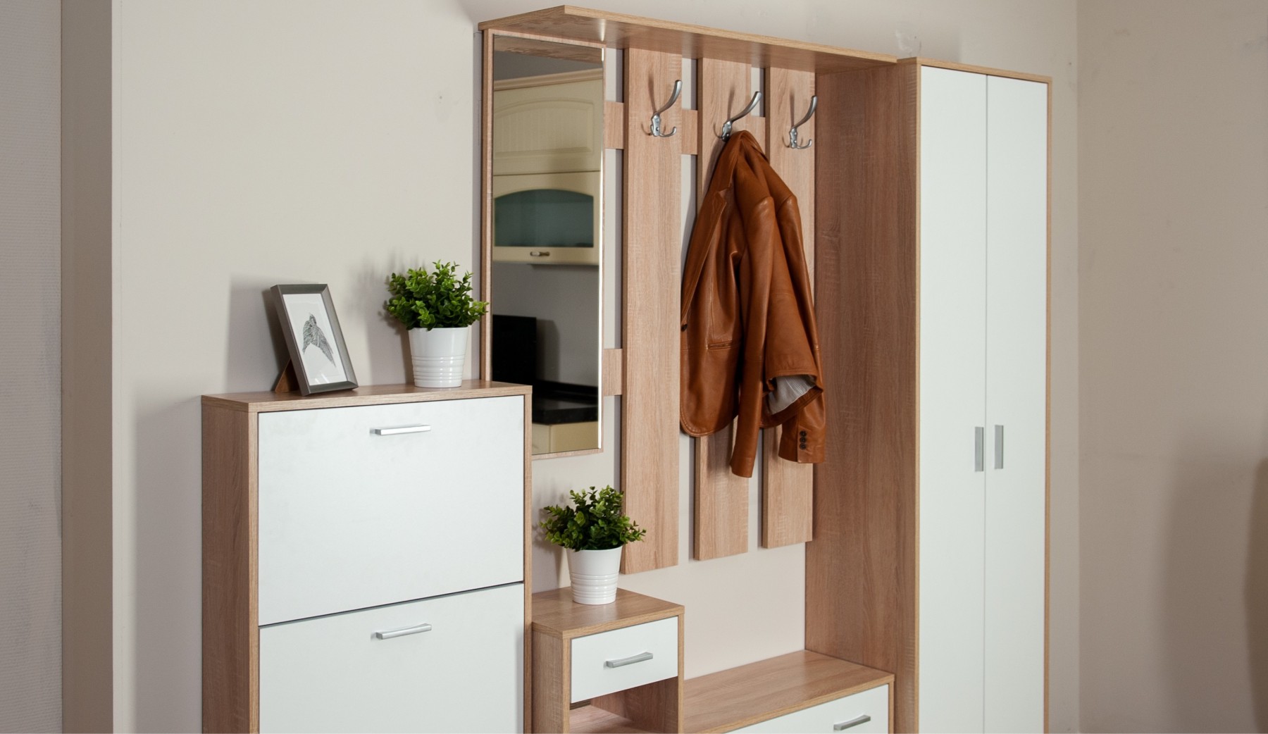 Интер – современная прихожая в стиле минимализм - минимум декора, максимум функционала. Компактная и вместительная, с небольшой глубиной – она поможет правильно организовать пространство в небольшом помещении. Прихожая включает в себя необходимые модули: вешалка с крючками, вместительные обувницы, выдвижные ящики для мелочей, зеркало. Модное сочетание нейтральных цветов дуба сономы и белого наполнит комнату теплым и мягким светом, визуально увеличит пространство. Прихожая подойдет тем, кто любит практичность и разумность. Хорошо сочетается с модулями системы Стелс.