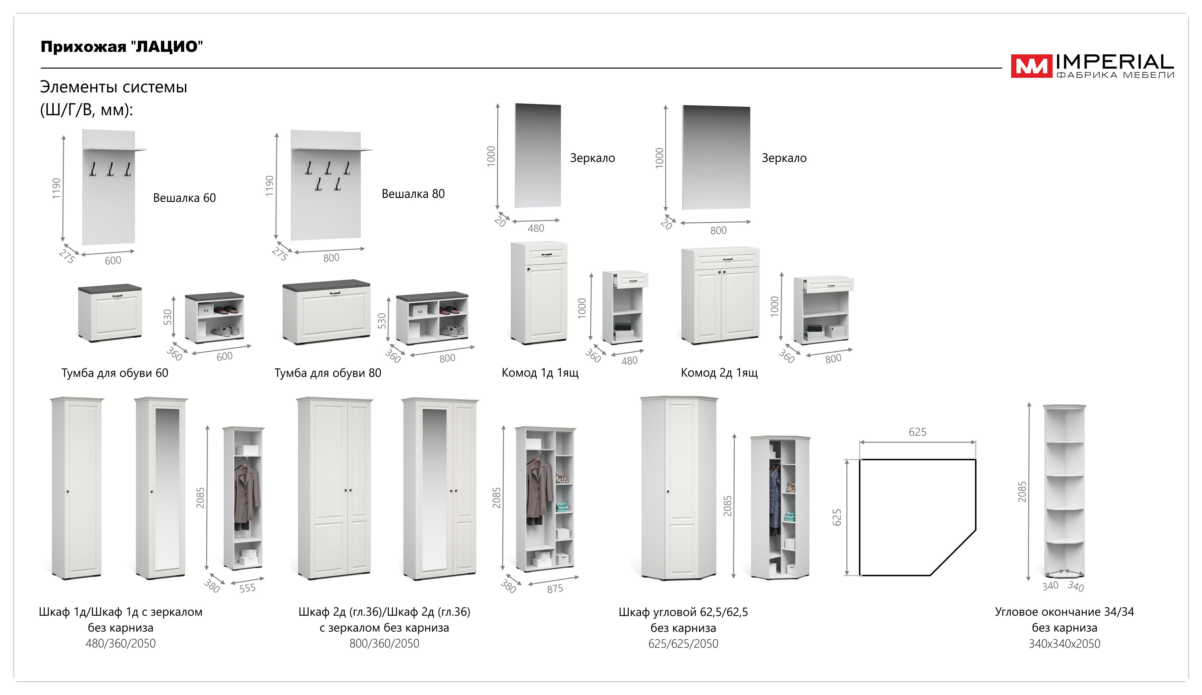 Прихожая Лацио в стиле неоклассики, обладающая высокой функциональностью, соответствует самым актуальным тенденциям в дизайне мебели. Фасады из МДФ с фрезерованной рамкой и имитацией текстуры дерева в сочетании с металлическими ручками добавляют ей изысканности и выразительности. Благодаря белоснежному цвету декора, прихожая визуально расширяет пространство. Большой ассортимент модулей позволяет выстроить систему хранения даже в ограниченном пространстве. Мебель выполнена из качественных материалов, гарантирующих долговечность и безопасность: корпус из экологичного ЛДСП класса эмиссии Е1, петли выдерживают 100 тыс. циклов открывания-закрывания (по ГОСТу достаточно 20 тыс. циклов), задняя стенка и дно ящиков из ламинированной плиты ХДФ, в ящиках комодов телескопические направляющие полного выдвижения.