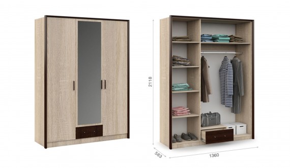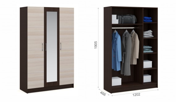 Распашной шкаф Чикаго 3д2ящ с зеркалом MAX