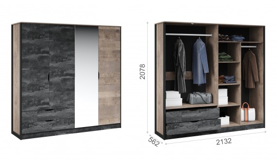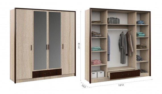 Распашной шкаф Чикаго 4д2ящ (2 зеркала) MAX