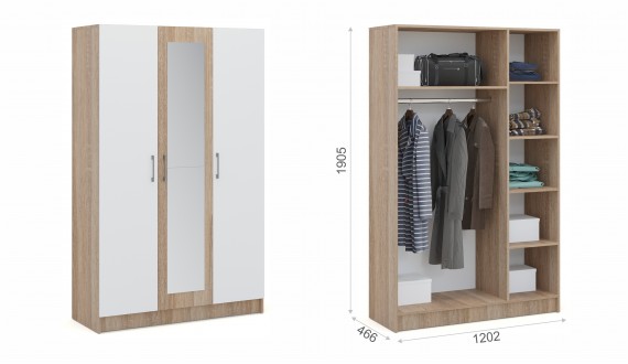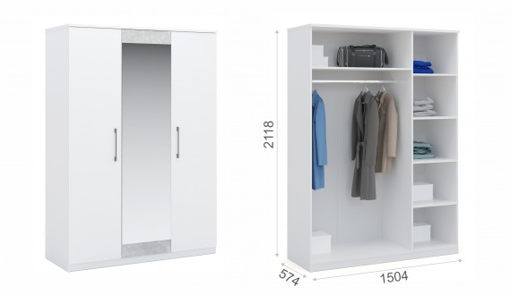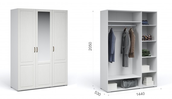 Распашной шкаф Лацио Сканди 3дв с зеркалом