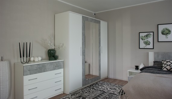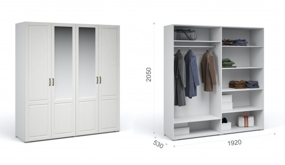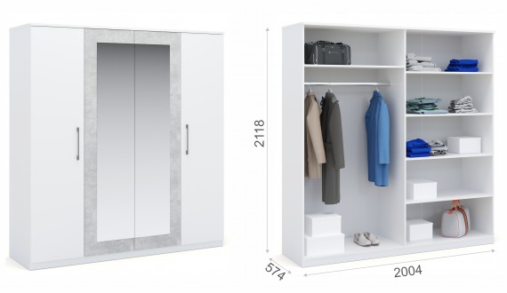 Распашной шкаф Чикаго вайт 4дв с 2 зеркалами MAX
