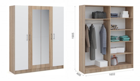 Распашной шкаф Лацио Сканди 4дв с 2 зеркалами