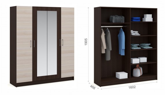 Распашной шкаф Чикаго 4дв с 2 зеркалами MAX