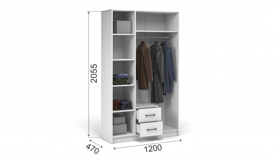Распашной шкаф Чикаго вайт 3д2ящ с зеркалом MAX