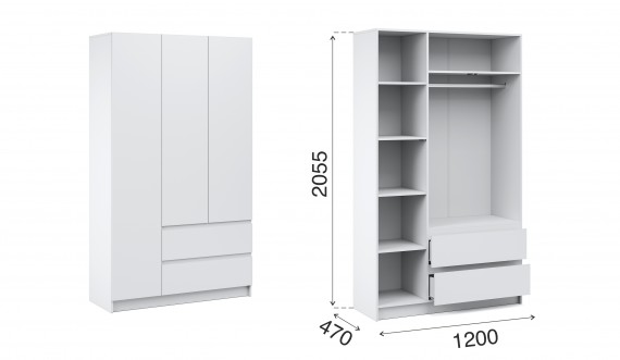 Распашной шкаф Лацио Сканди 3дв без зеркал