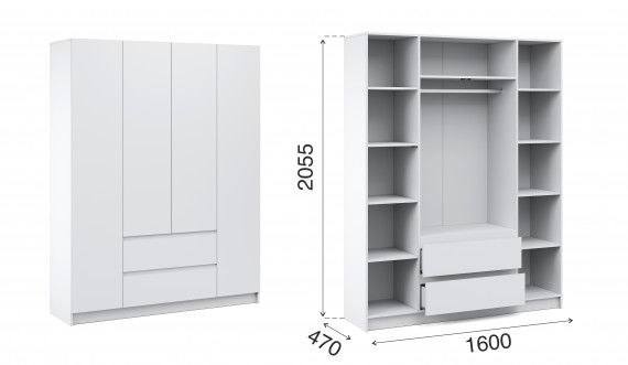 Распашной шкаф Лацио Сканди 4дв без зеркал