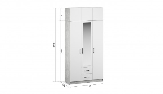 Распашной шкаф Чикаго 3дв2ящ с зеркалом с антресолями