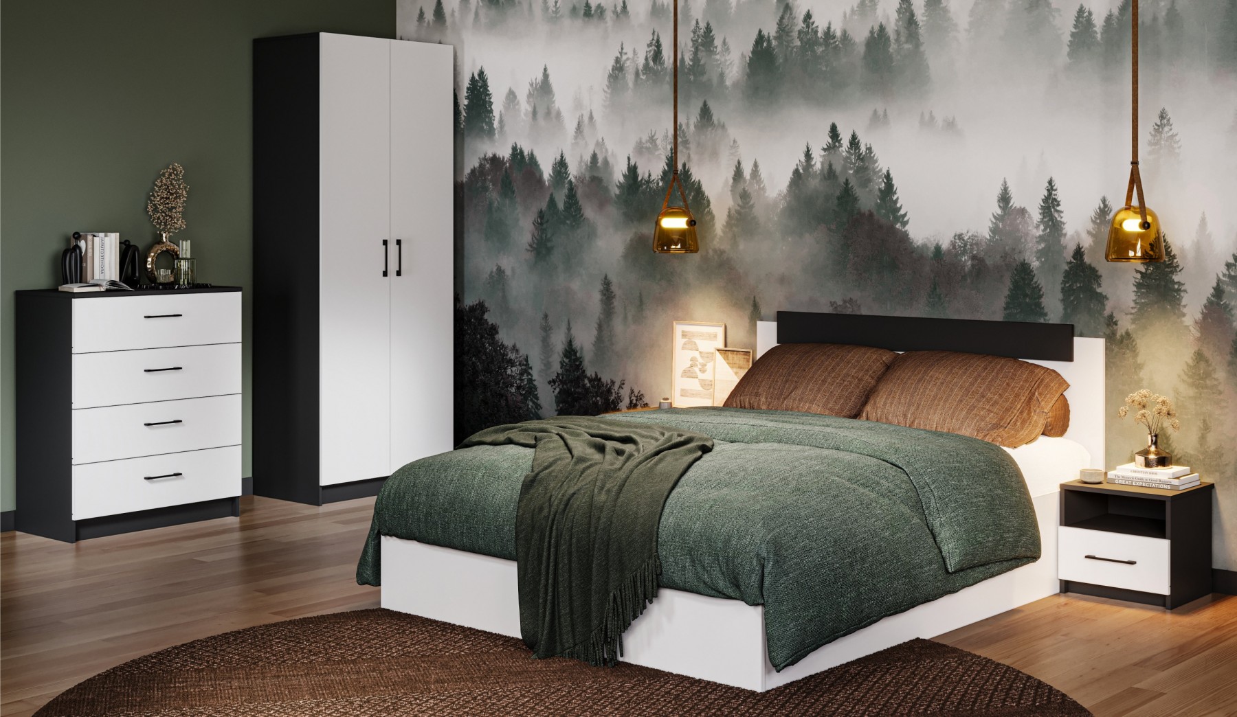 • Дно ящиков и задняя стенка изготовлены из ламинированного ХДФ, который выделяется высокой прочностью и экологической безопасностью, что гарантирует долговечность и надежность мебели
