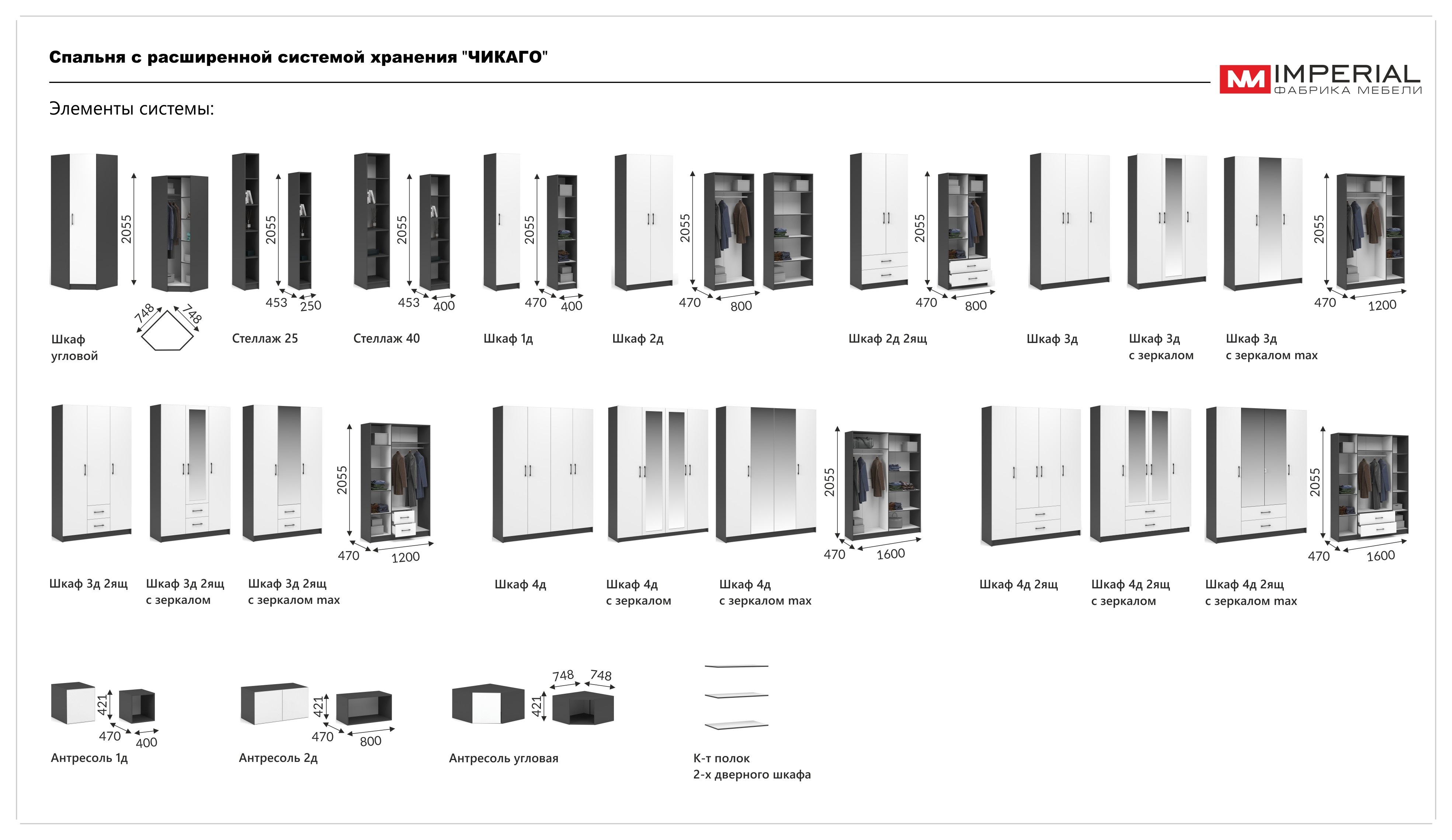 Чикаго 4дв с 2 зеркалами MAX Антрацит/белый