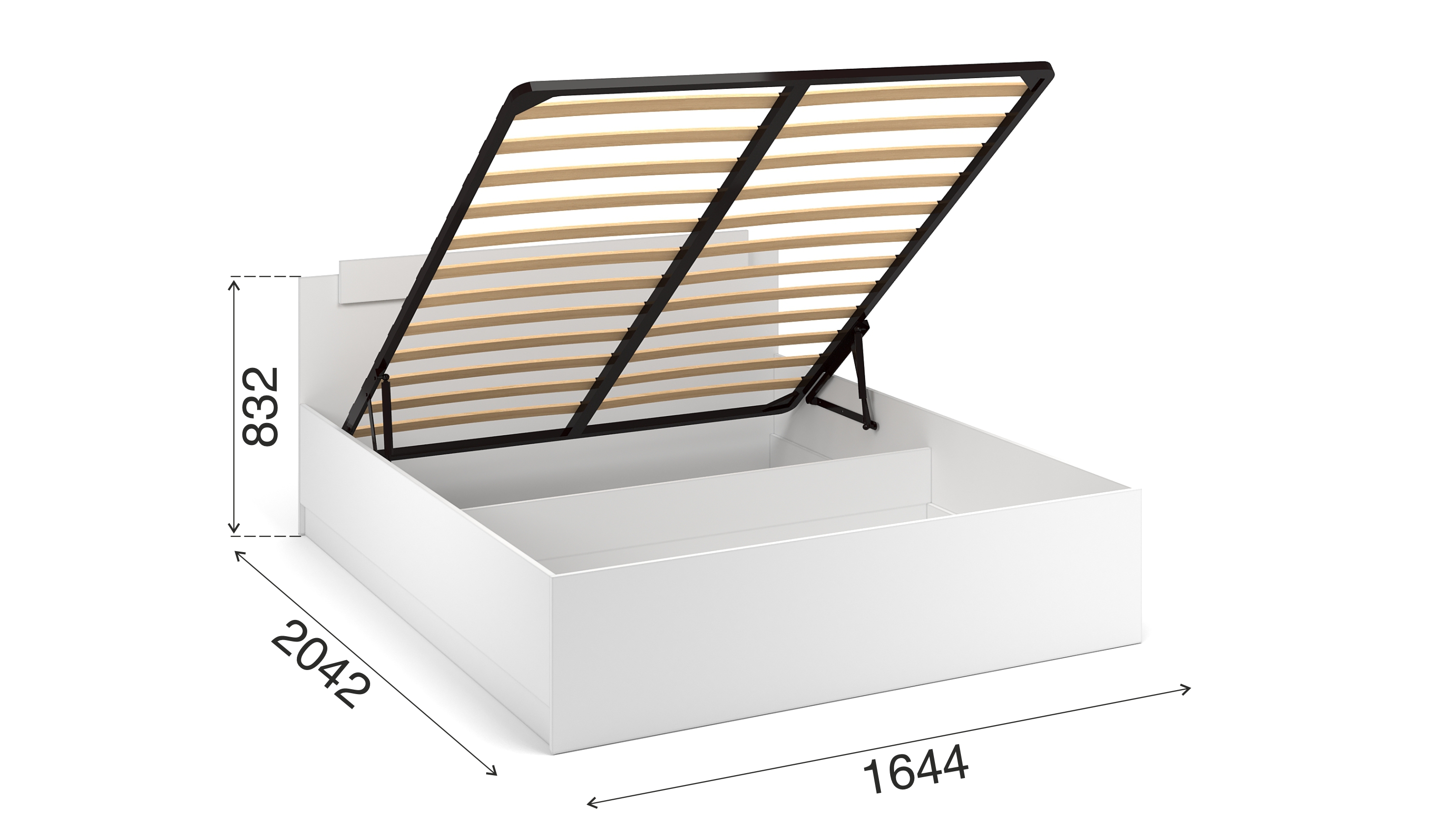 • Ортопедическое основание на газовых лифтах - подъемная часть кровати надежно фиксируется в открытом и закрытом положении