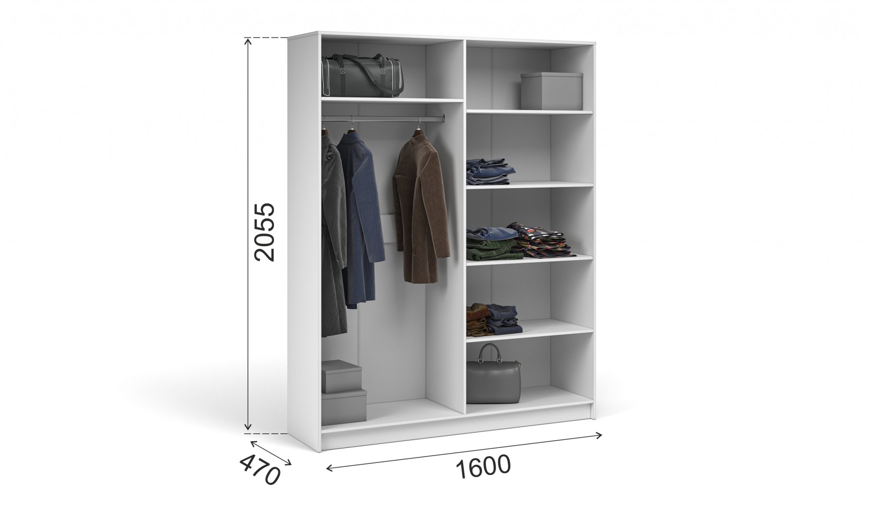 • Комплект полок из 2-х штук для 2-х дверного шкафа – дополнительная опция, приобретается отдельно