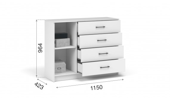 • Дно ящиков и задняя стенка изготовлены из ламинированного ХДФ, который выделяется высокой прочностью и экологической безопасностью, что гарантирует долговечность и надежность мебели